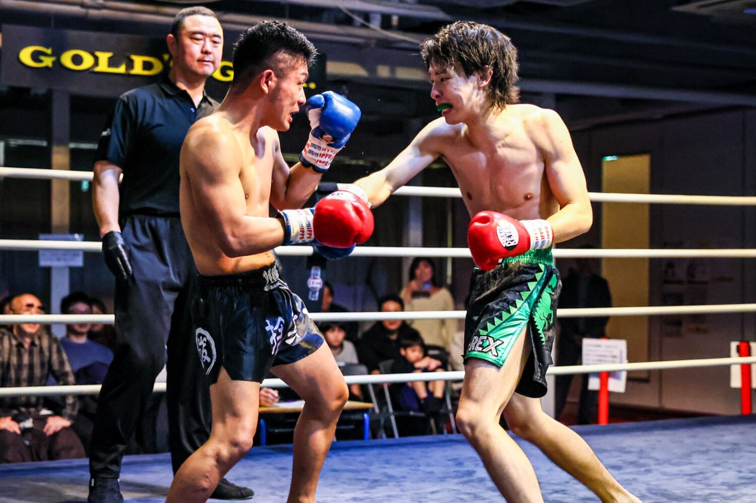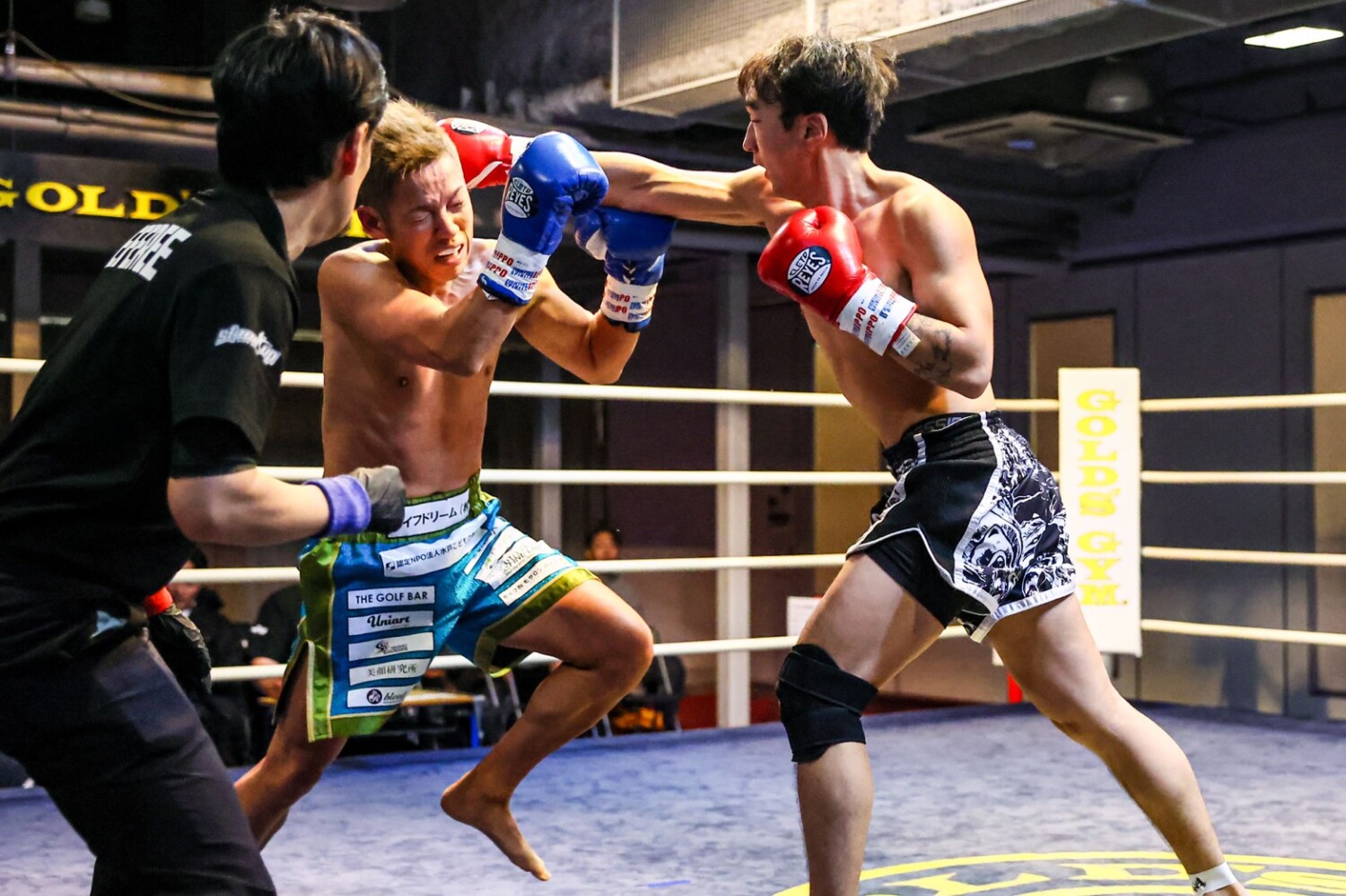金山と三橋の4戦2勝2敗同士の一戦。1R、三橋が左ミドル、左ストレートで下がらせる。2Rもアグレッシブに前に出る三橋のラッシュをしのいだ金山は逆にプレスをかけて打ち合いに応じる。