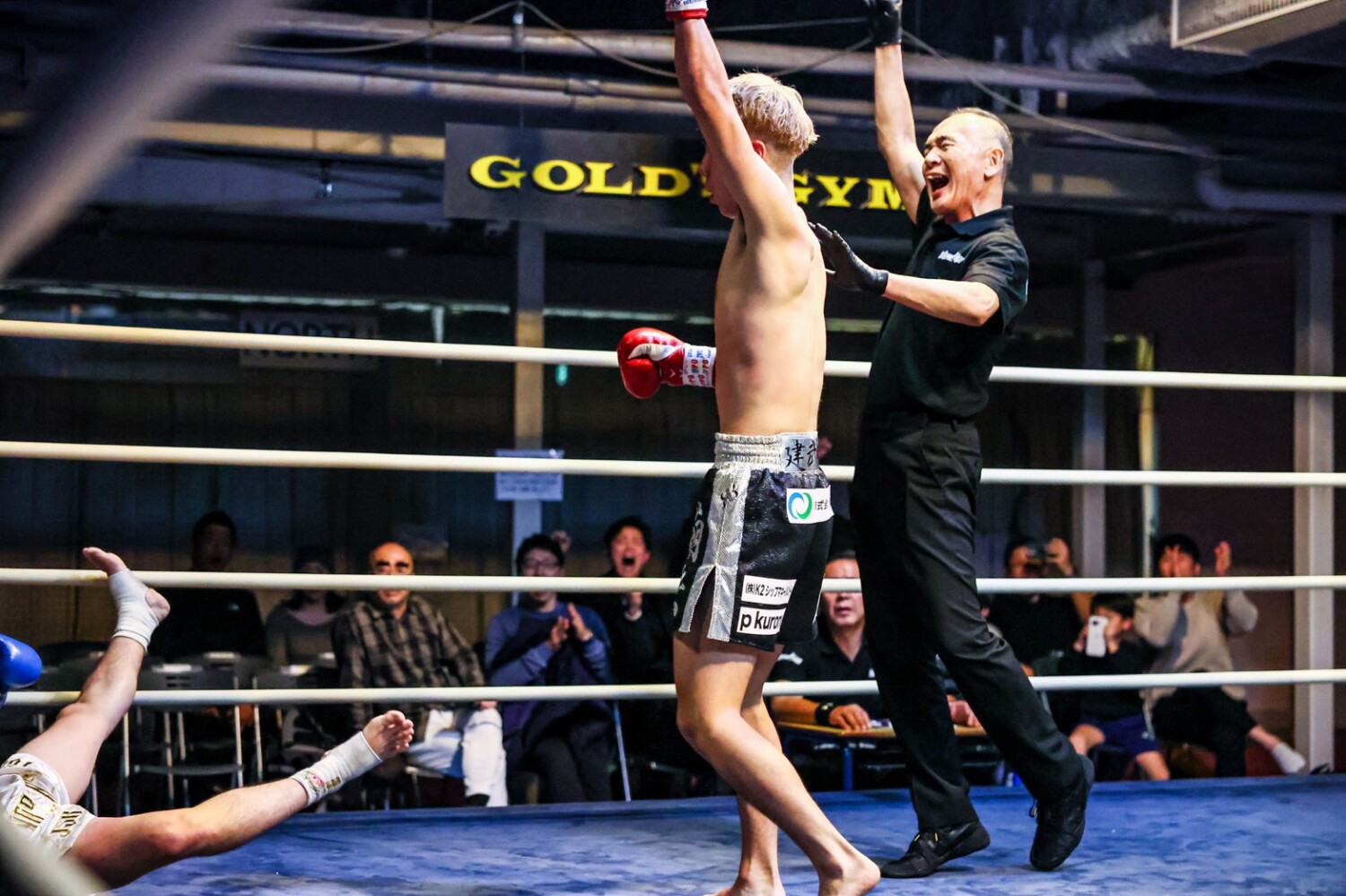 2戦2勝の日原と3戦3勝(2KO)の大久保の無敗18歳対決。日原のセコンドには原口健飛がつく。1R、軽やかなステップから右ロー、左ジャブの日原に、大久保は接近戦での打ち合いでは一歩も退かない。