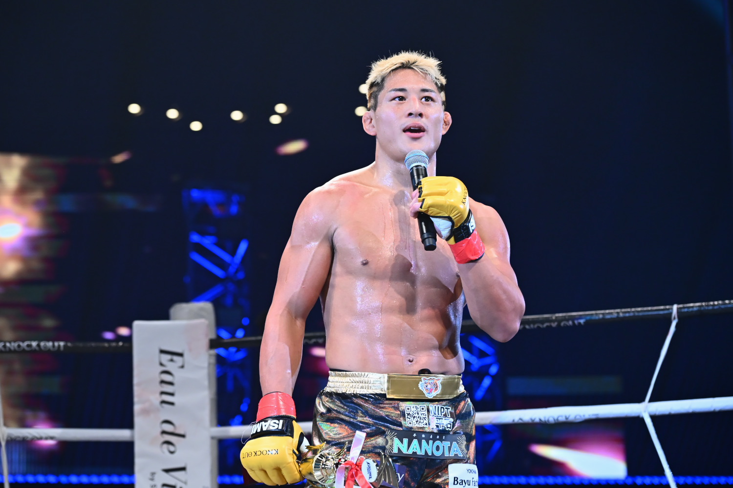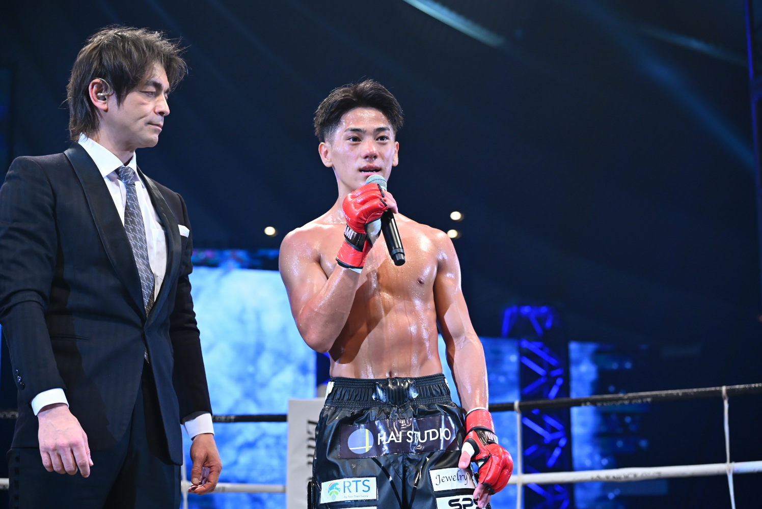 マイクを持った迅は「山口代表、僕の階級のRED王座は空位やと思うんで、KNOCK OUTのベルト取りたいんで、一番強い奴とベルト懸けてやらせてください」とアピールした。