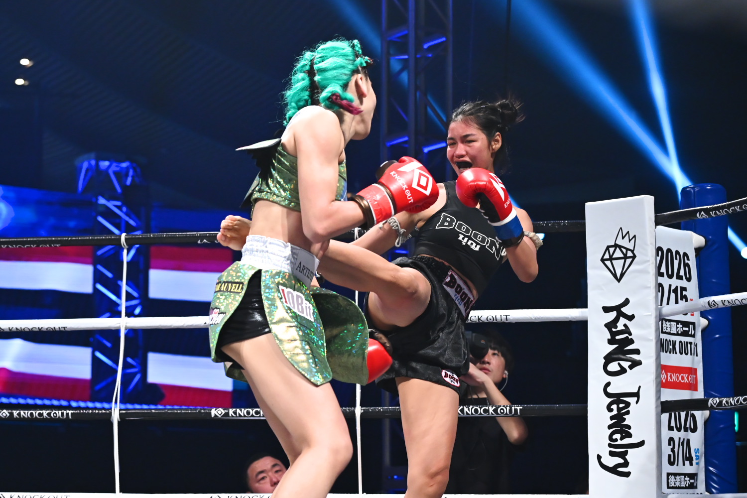 KNOCK OUT 12.30 代々木第二(前半戦レポ):ぱんちゃん璃奈、肘有り初戦はサネーガームに判定負け。松嶋こよみ・大雅・カーライルがUNLIMITEDルール戦で完勝