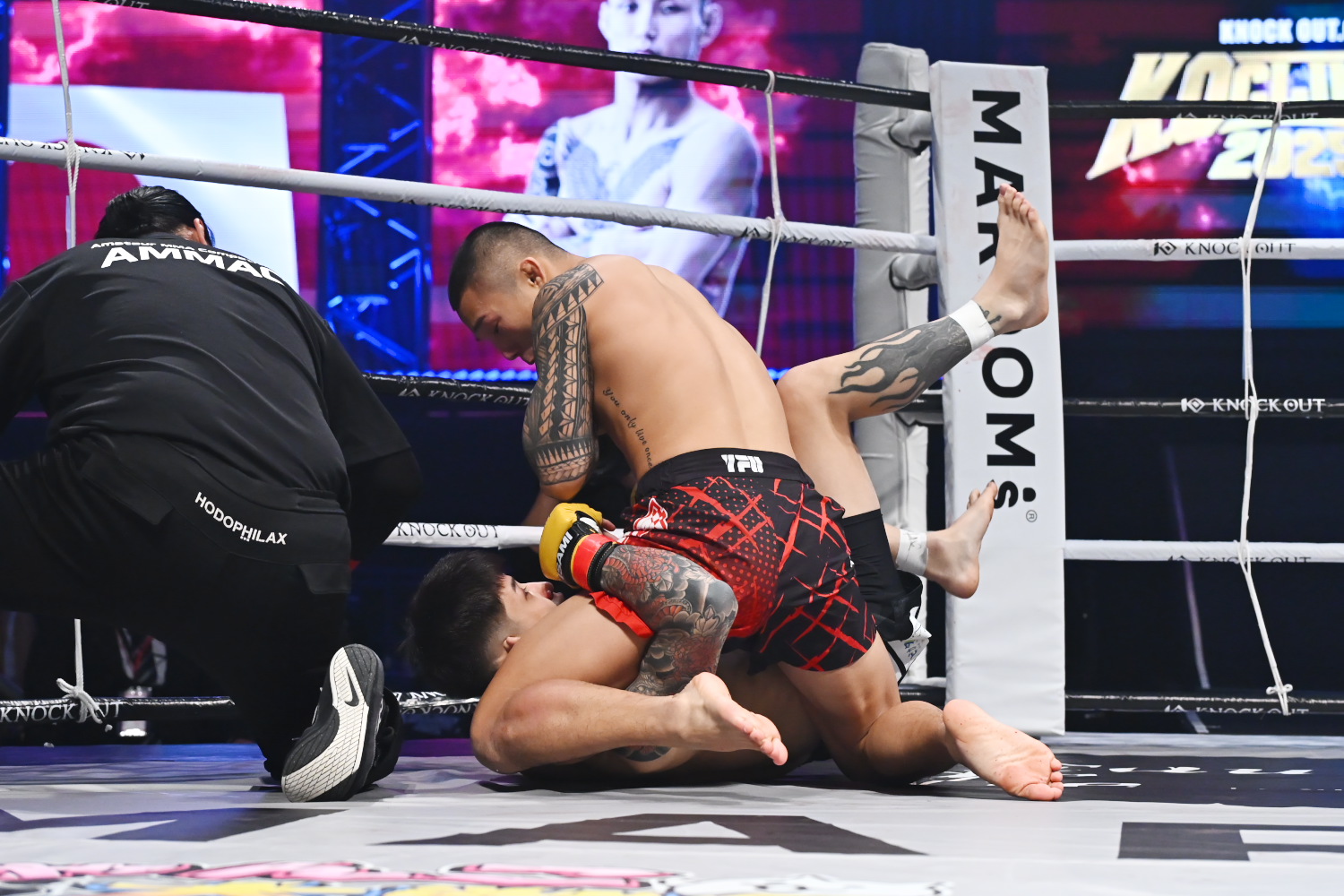 1R、お互い攻撃が少ない幕開けだったが、中盤、タンがプレッシャーをかけ、ワンツーで右ストレートをクリーンヒット。反応できなかった平川はダウンし、タンが上からパウンドをまとめたところで、橋本レフェリーがストップした。