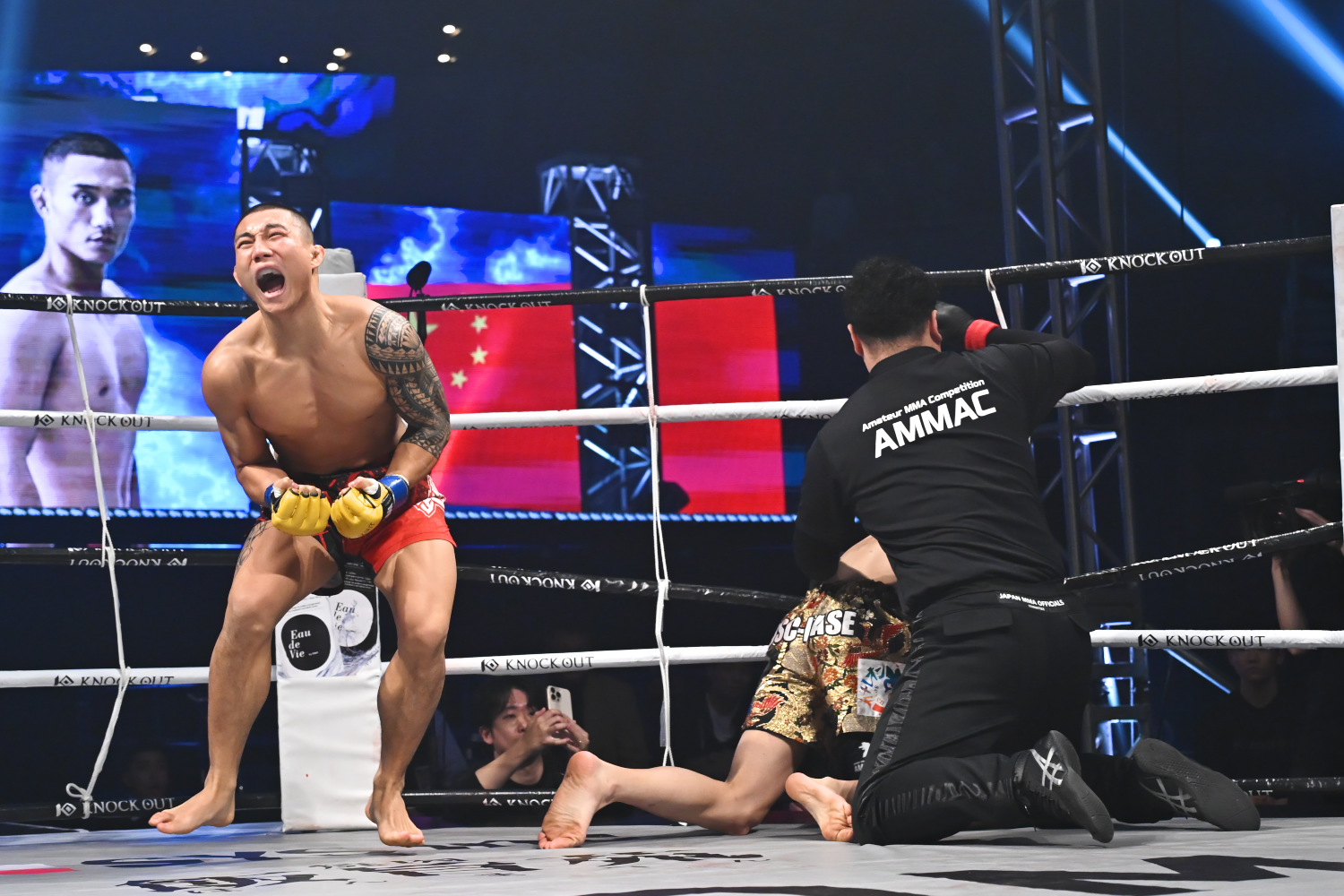 タンはKNOCK OUTでも活躍するチュームーシーフー同様、CFP推薦で中国から初参戦した22歳。今年MMAデビューしたばかりで4月と9月19日の試合でいずれも勝利している。シュアイジャオという中国古式レスリング、キック、ムエタイの経験もあるという。11月のトーナメント一回戦ではキックボクサーの瑠夏をわずか51秒、右フックからのパウンドでKO。今大会での準決勝でも平川蓮斗を94秒、右ストレートからのパウンドでKO。決勝も同様の攻めでインパクトを残す。