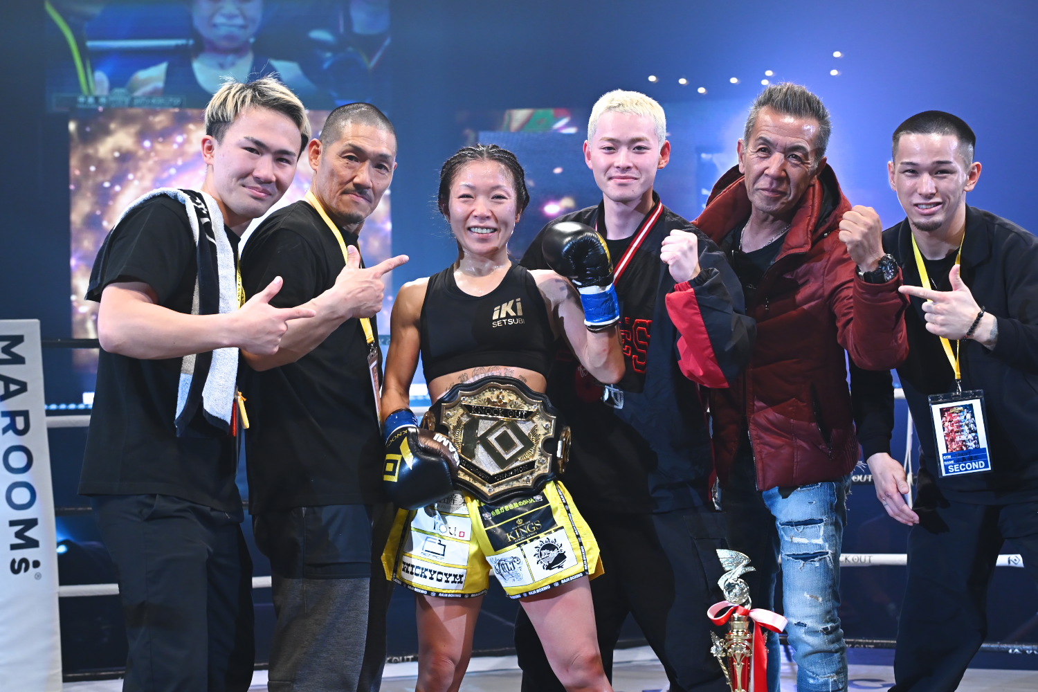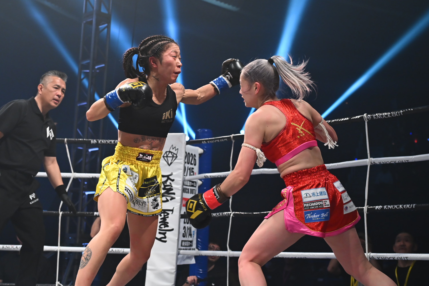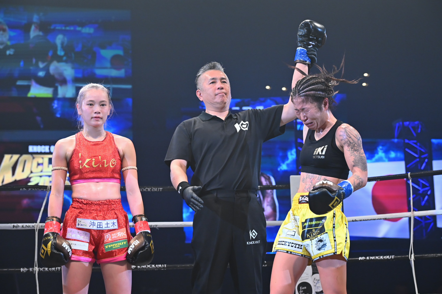 Kihoは23歳。21年にKrushでプロデビューし、K-1 GROUPでは10戦6敗4分と苦戦したが、23年8月には末松晄とドロー。24年からKNOCK OUTに戦場を移すと6連勝中で、今年は2月に菊地美乃里に判定勝ちし、5月にはNaoに3R右ハイキックでKO勝ちし、7月には森川侑凜に判定勝ち。9月のKNOCK OUT-BLACK女子アトム級タイトルマッチでは山田真子に延長判定勝ちし王者となった。