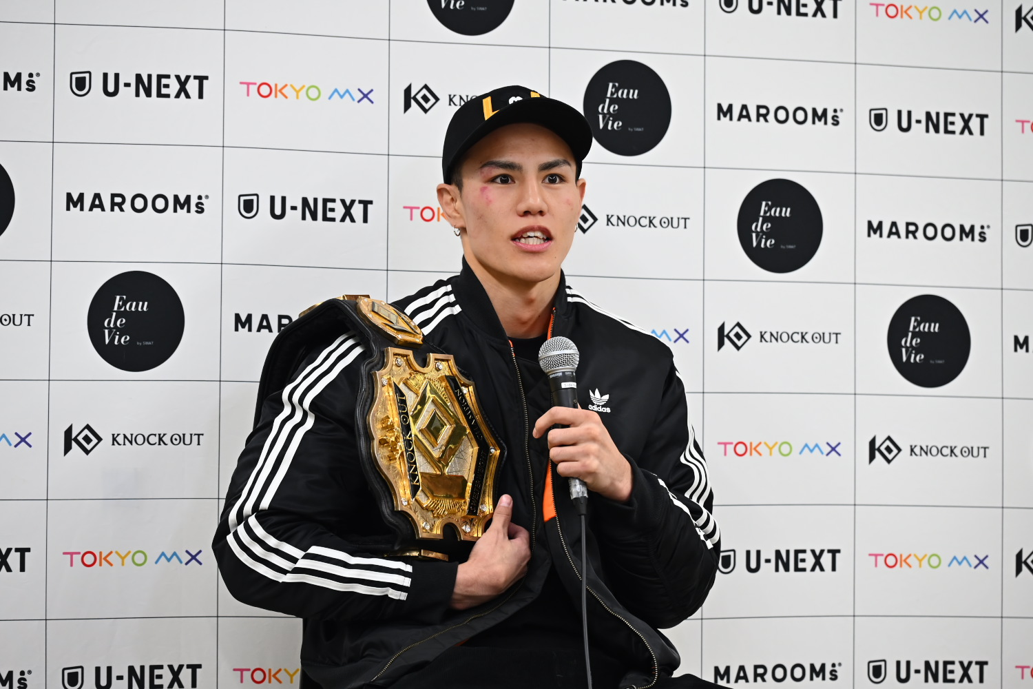 ベルトを巻いた海人は「これから本格的に世界最強目指し、ONE行って、全員倒します。これから先、二度と負けないので、期待して見ていてください」とアピールした。