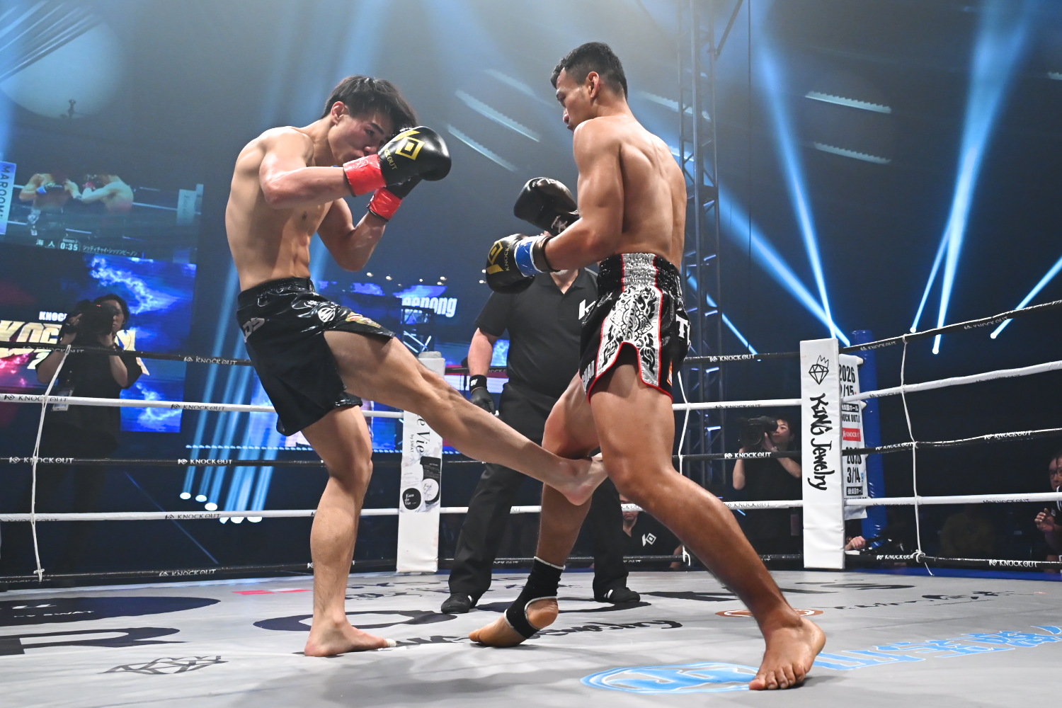2R、シッティチャイは1Rよりは前に出るようになり、左ミドルのヒットを増やして持ち直し、左ハイも当てる。海人はオーソドックス主体となり左カーフはあまり打てなくなるが、右のインカーフのヒットを増やす。終盤にはシッティチャイがプレッシャーをかけ返す場面も。だが海人は強打を許さず、右カーフを返して前に出返す。記者採点はイーブンだがシッティチャイの可能性もある。