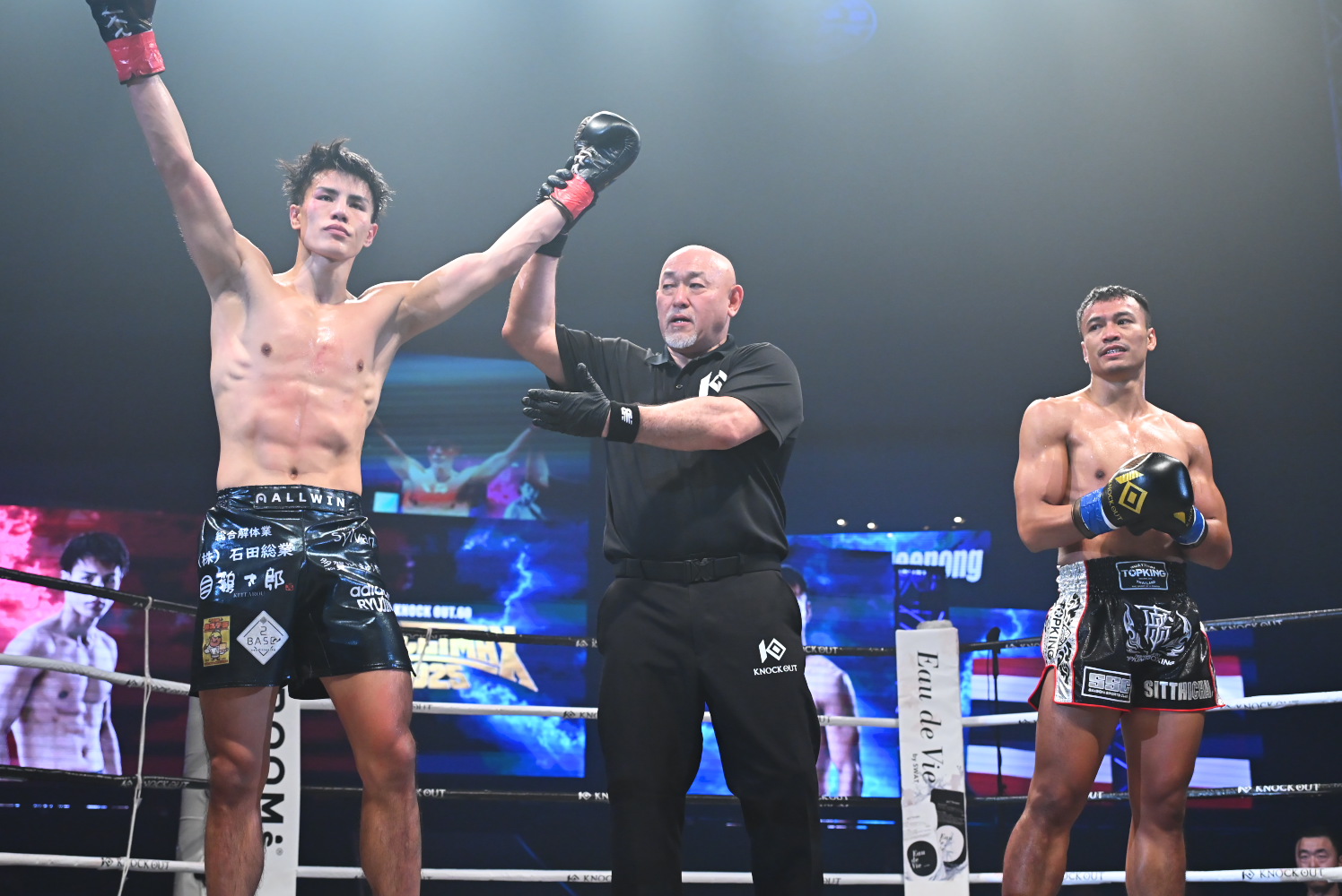 2R、龍聖は修平をロープに詰め、左ジャブ、右カーフを当て続け、三日月蹴り、膝蹴りも絡めて追い詰める。終盤、龍聖は右ハイでダウンを奪うと、最後も再び右ハイでダウンを奪ったところで、秋谷レフェリーがストップした。