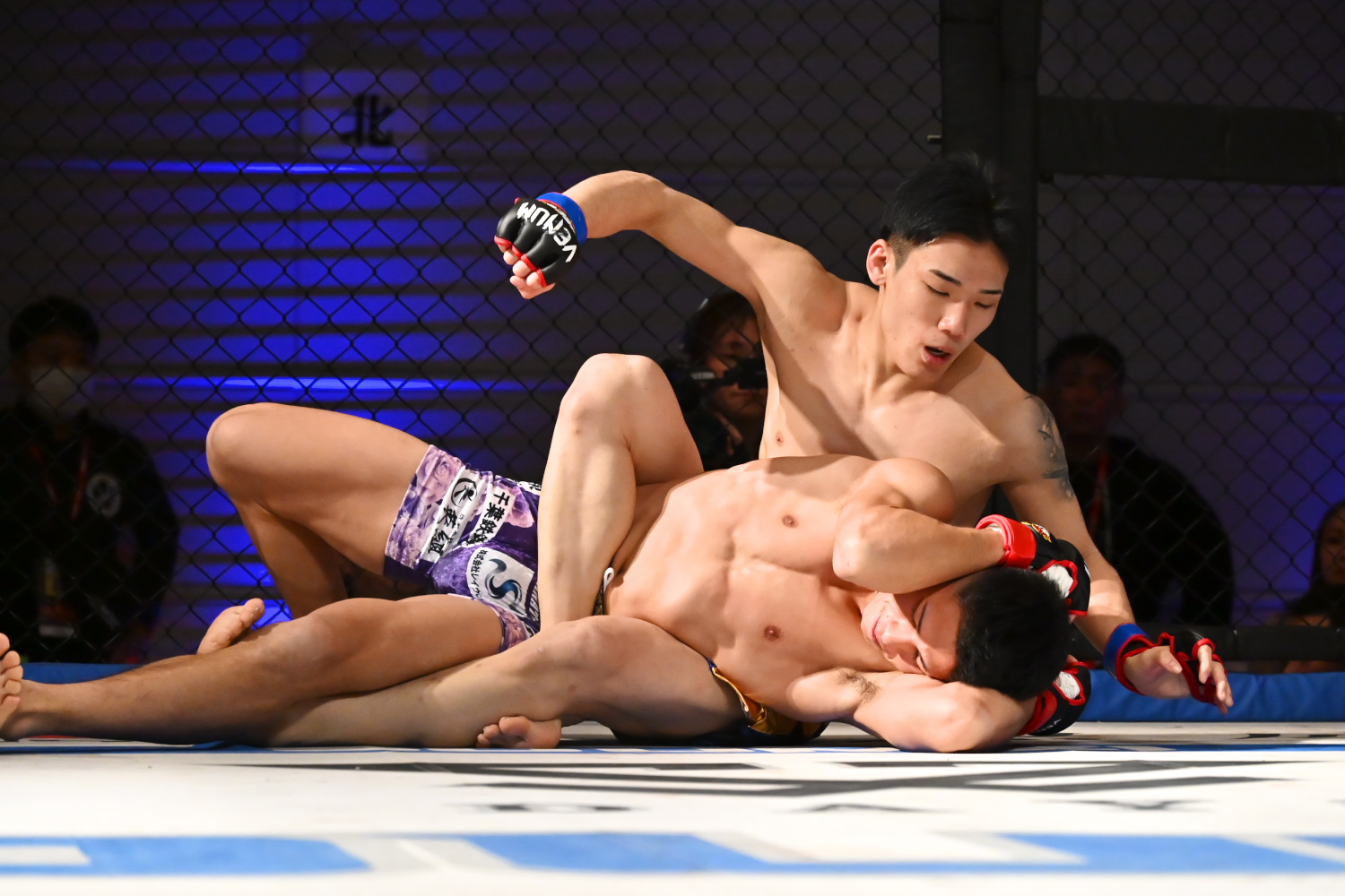 1R、中盤に佐藤がテイクダウンを奪うが、福がすぐに下から腕十字を仕掛けて、最後までキープする。佐藤は防御を続け、最後にパウンドを当てて終える。