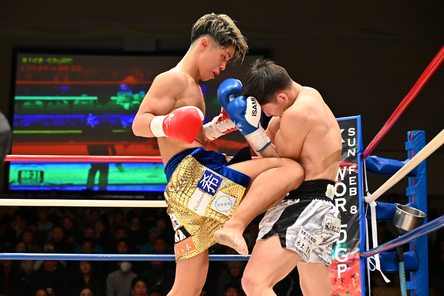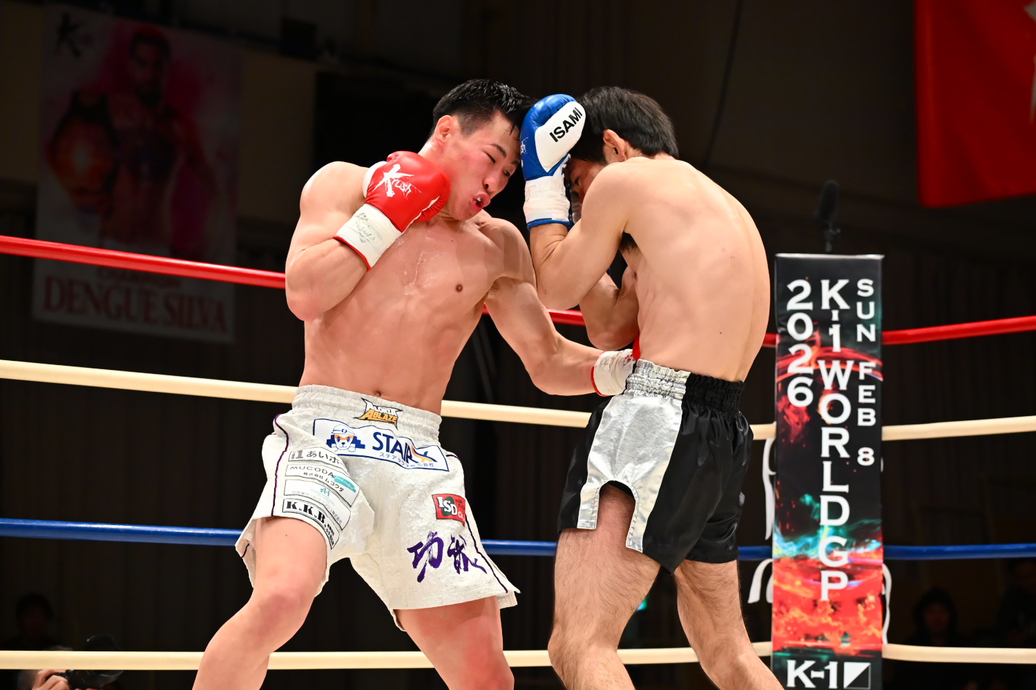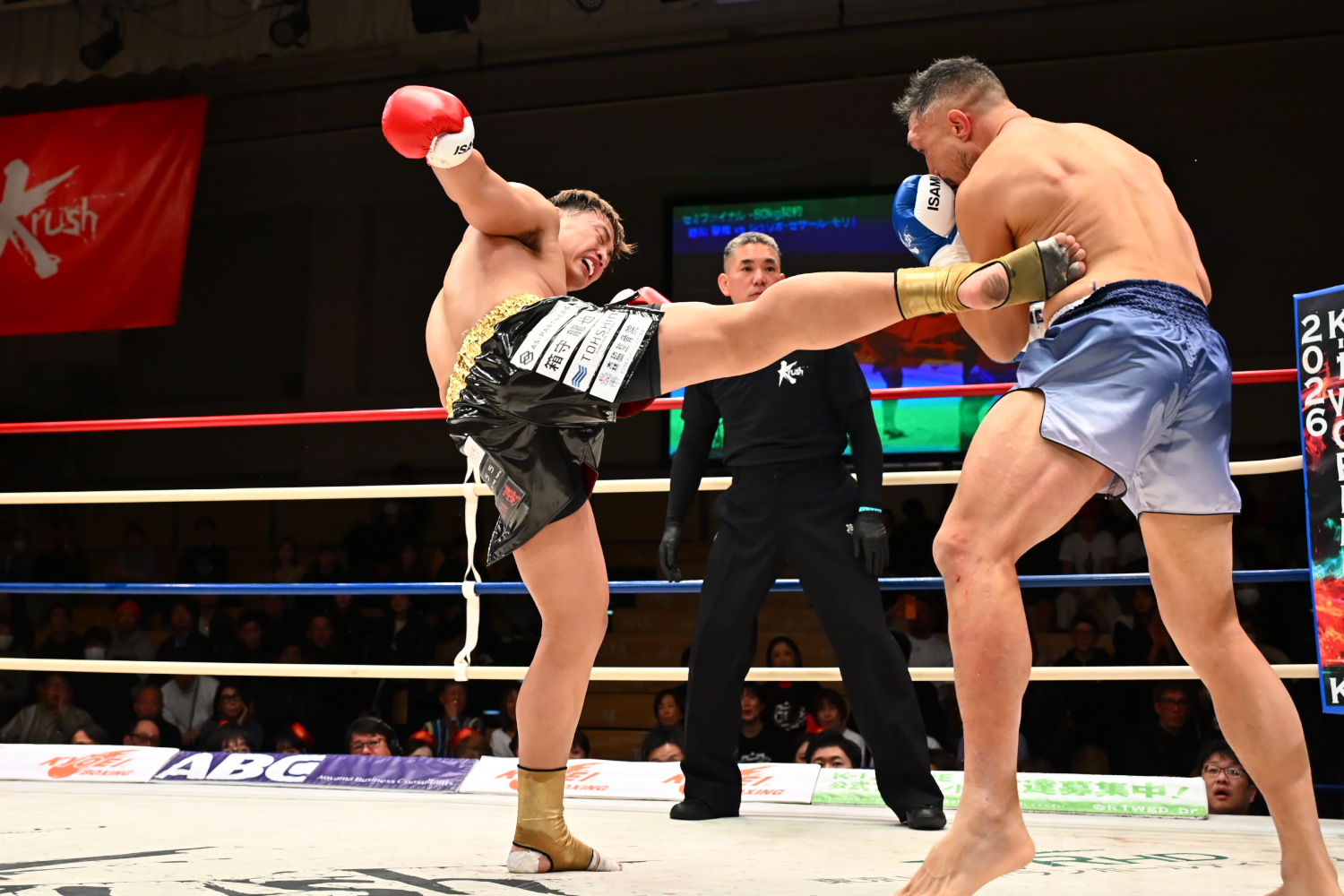 1R、坂本が序盤から積極的に攻め、右フックを連打してから、左ミドルキックで倒し、ダウンを奪う。2Rも序盤から右フックの連打でダウンを奪うと、さらに右フックでダウンを奪ったところで、山浦陣営がタオルを投げ、レフェリーもストップした。