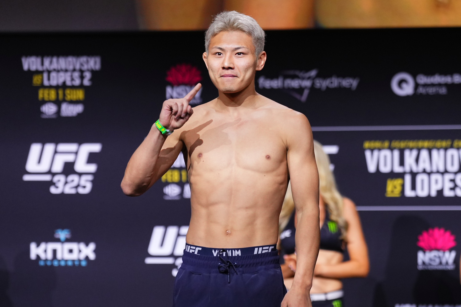 SYDNEY, AUSTRALIA – JANUARY 30: Keiichiro Nakamura of Japan poses on the scale during the UFC 325 Ceremonial Weigh-in at Qudos Bank Arena on January 30, 2026 in Sydney, Australia. (Photo by Jeff Bottari/Zuffa LLC)