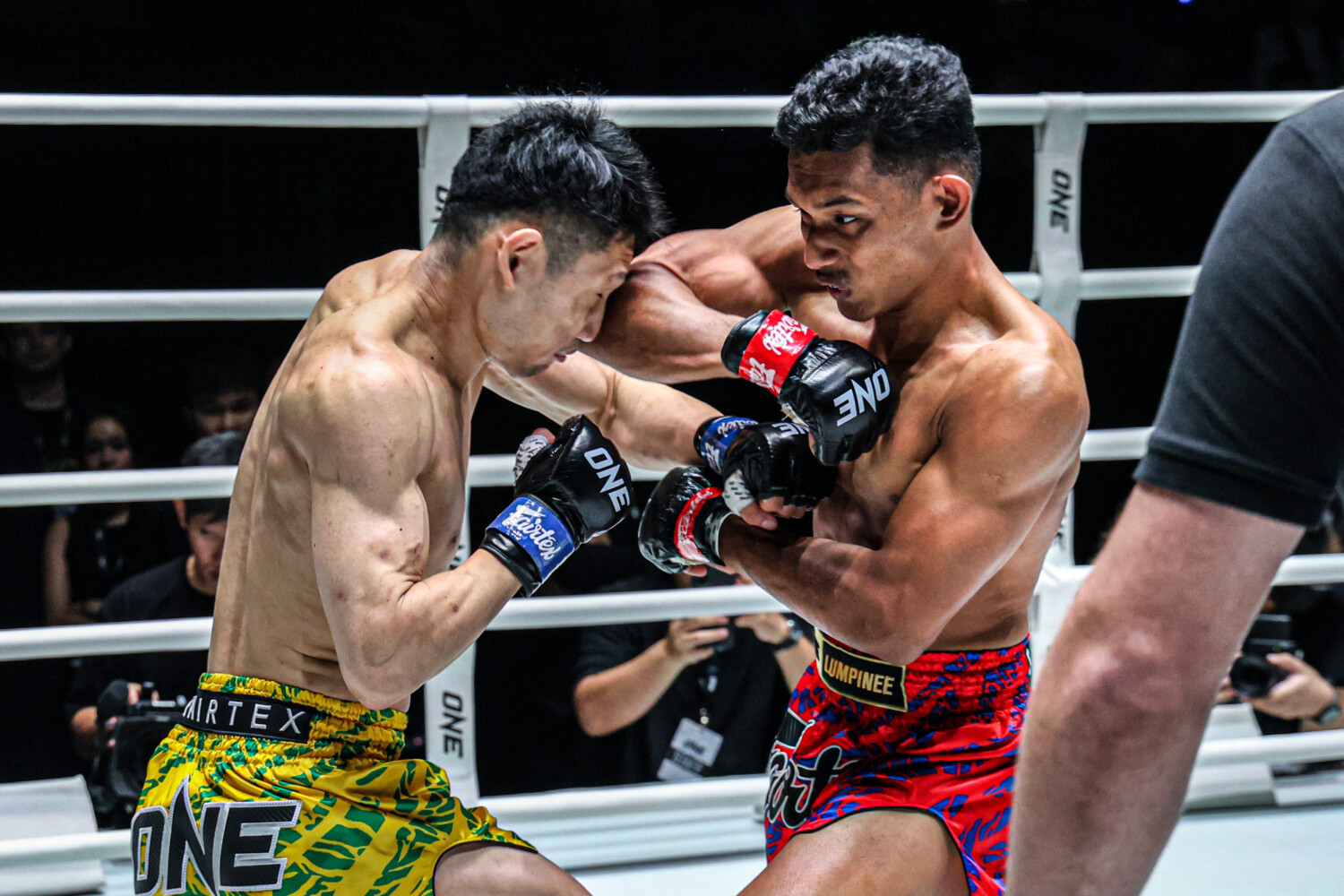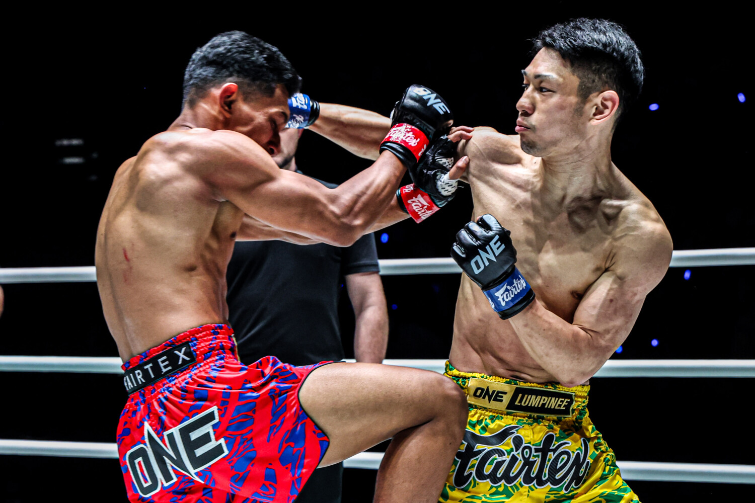 1R、開始すぐから谷津がプレッシャーをかけて、左ボディ、右ロー、ミドルを的確に当てる。これで主導権を握った谷津は、リンテットアウンをコーナーに詰め、左ミドルを当ててから、左ボディフックを強打し、1分足らずでダウンを奪う。リンテットアウンは10カウントギリギリに立とうとしたが間に合わず、レフェリーがストップした。