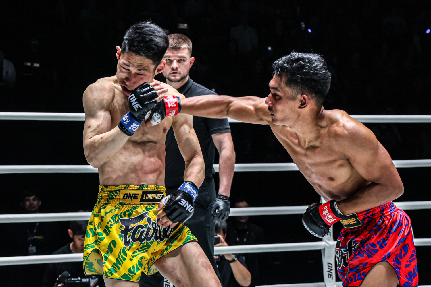 1R、羅向がサウスポー、サブリがオーソドックスで構える。羅向は左ボディストレート、ミドル、ローを随所で当てる。サブリも右フック、組んでの肘を接近戦で当てつつ、離れればミドル、インローを返す。均衡状態が続く中で、終盤、羅向が左ストレートを当てるが、まだサブリもひるまない。記者採点は羅向だがサブリについていても不思議ではない程度の差だ。