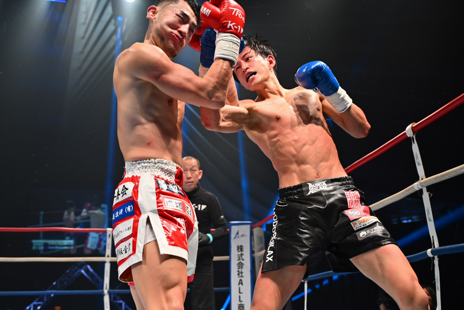 1R、ロドリゲスがプレッシャーをかけ、パンチを積極的に振るうが、まだ強打は乏しい。松谷は次第に右のロー、ミドルを当てるようになるが、まだ攻撃が少なく、顔面への攻撃が乏しい。記者採点はイーブン。
