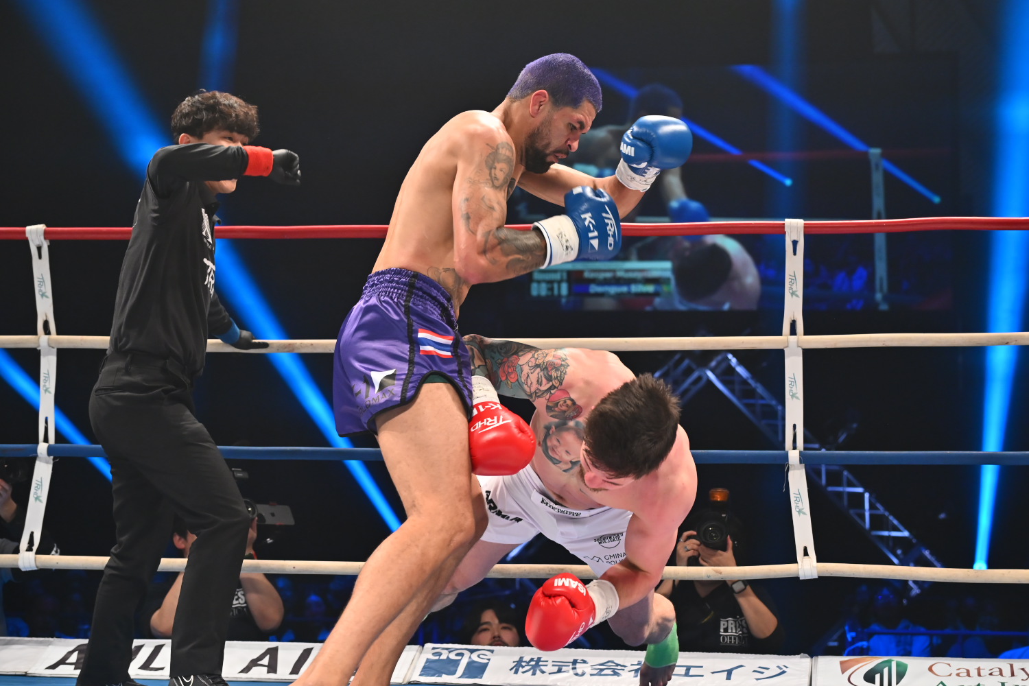 3R、松谷が左ミドル、接近戦でのテンカオを度々当て、優位に進める。ロドリゲスもひるまず、時折左ボディを強打する。松谷の勝利間近と思われたが、終了間際、ロドリゲスが接近戦で放った右フックで松谷が倒れ、中野レフェリーはダウンを宣告する。結局これが決め手となり、松谷はまさかの逆転判定負けを喫した。記者採点は28-29でロドリゲス。