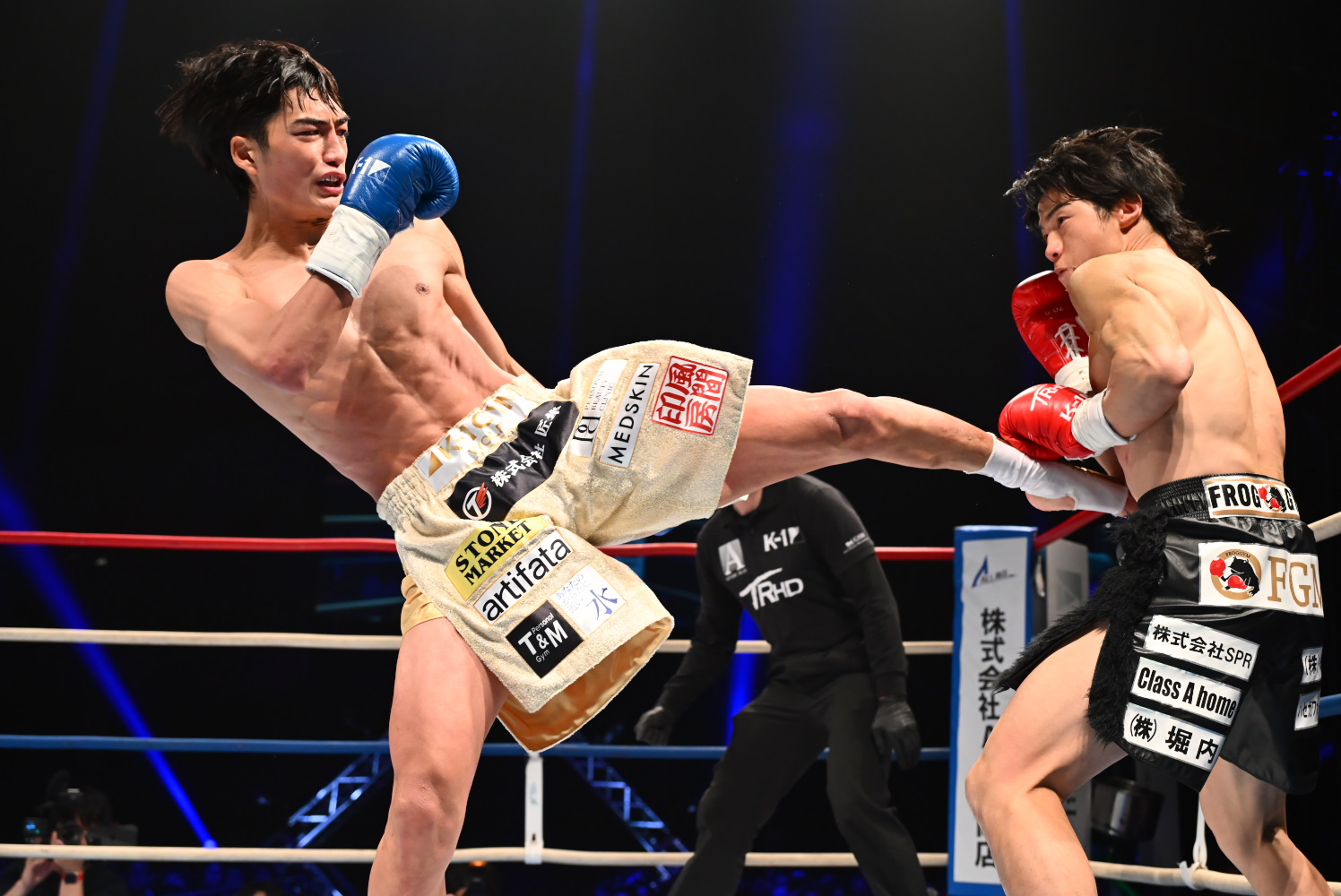 K-1 2.8 代々木第二(レポ/ワンマッチ):計量オーバーの大久保琉唯、金子晃大戦は延長ノーコンテストに。里見柚己、朝久裕貴との死闘制しライト級王者に。石井一成とSAHO、判定勝ちで王座防衛。松谷綺、メキシコのロドリゲスに逆転判定負けし王座陥落