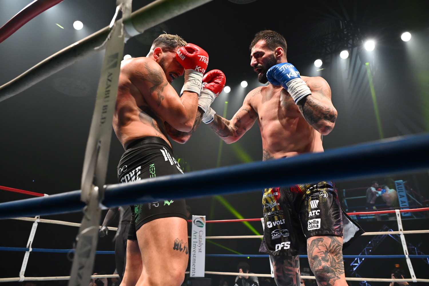 1R、エル・ボウニが右ロー、左右のボディストレートを散らしつつ、右ストレート、左フック等の顔面へのパンチも当て、手数多く攻める。マルコも打ち合いで左フックをカウンターで返すが、攻撃が少なく、攻撃をもらうと時折動きが止まり印象が悪い。記者採点はエル・ボウニ。