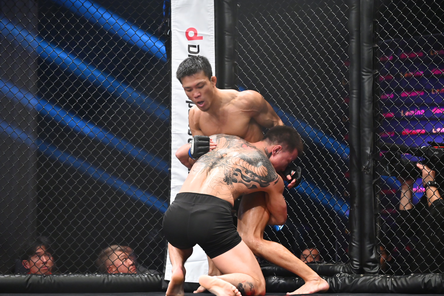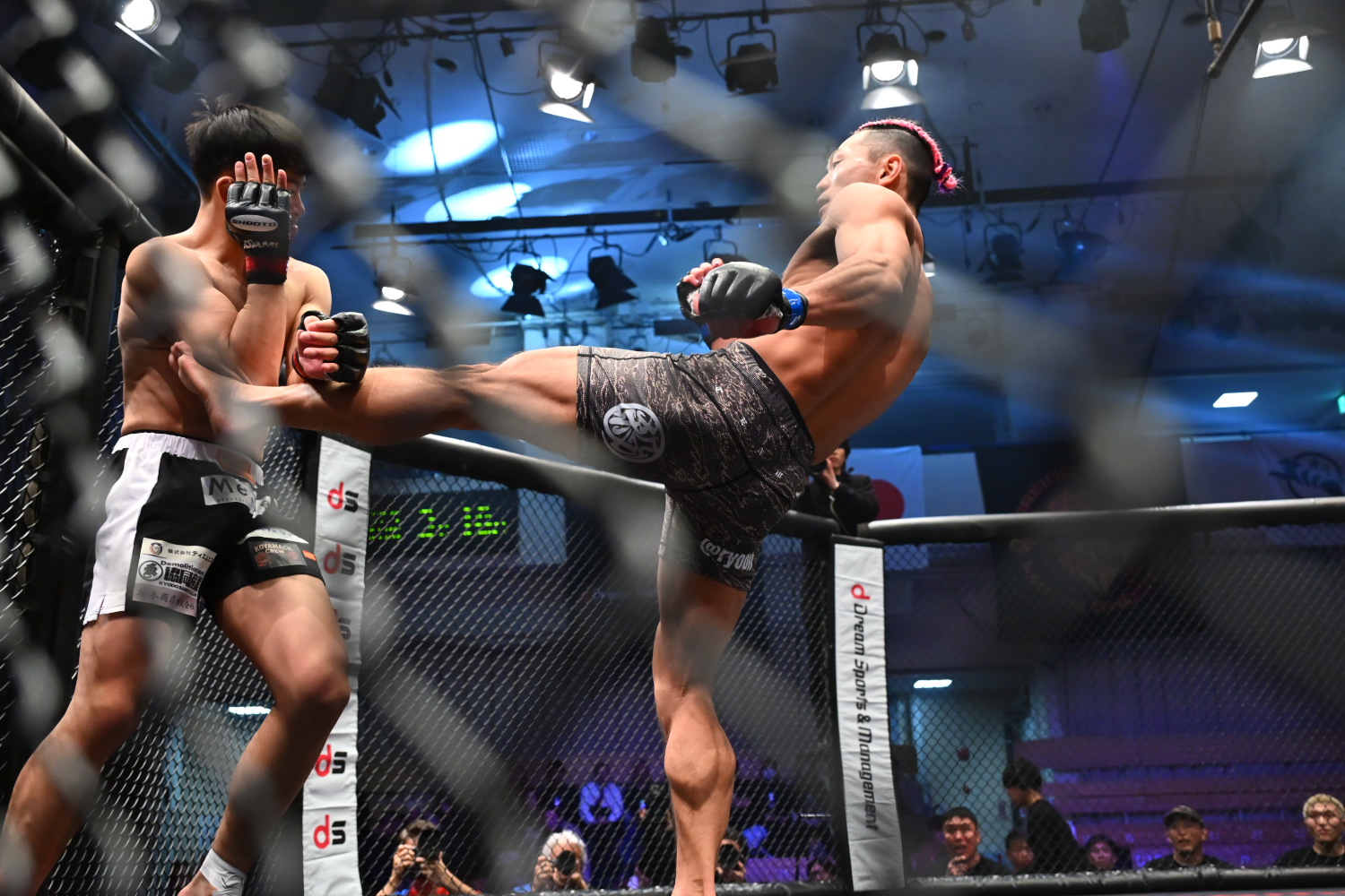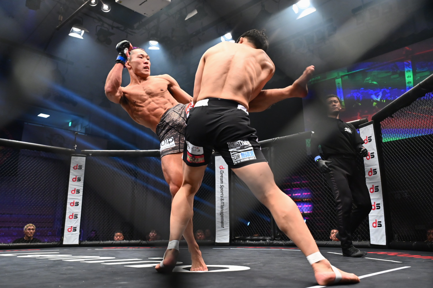1R、松下が2度目のタックルでテイクダウンを奪い、金網際で押さえるが、その先の攻めが乏しい。終盤、宮城は脱出を狙う動きから、バックマウントを奪って形勢逆転し、裸絞めを狙いつつ鉄槌も当て、好印象で終える。記者採点は宮城。