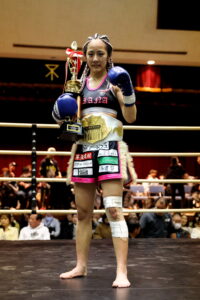 1Rから両者一歩も譲らない攻防が続き、首相撲の展開が多く見られた。2RにRIANAが的確にパンチを当てていき、3Rには両者の気持ちが強く出た激しい打ち合いが繰り広げられた。全体を通して徐々にRIANAがペースを掴んでいきベルトを掴み取った。