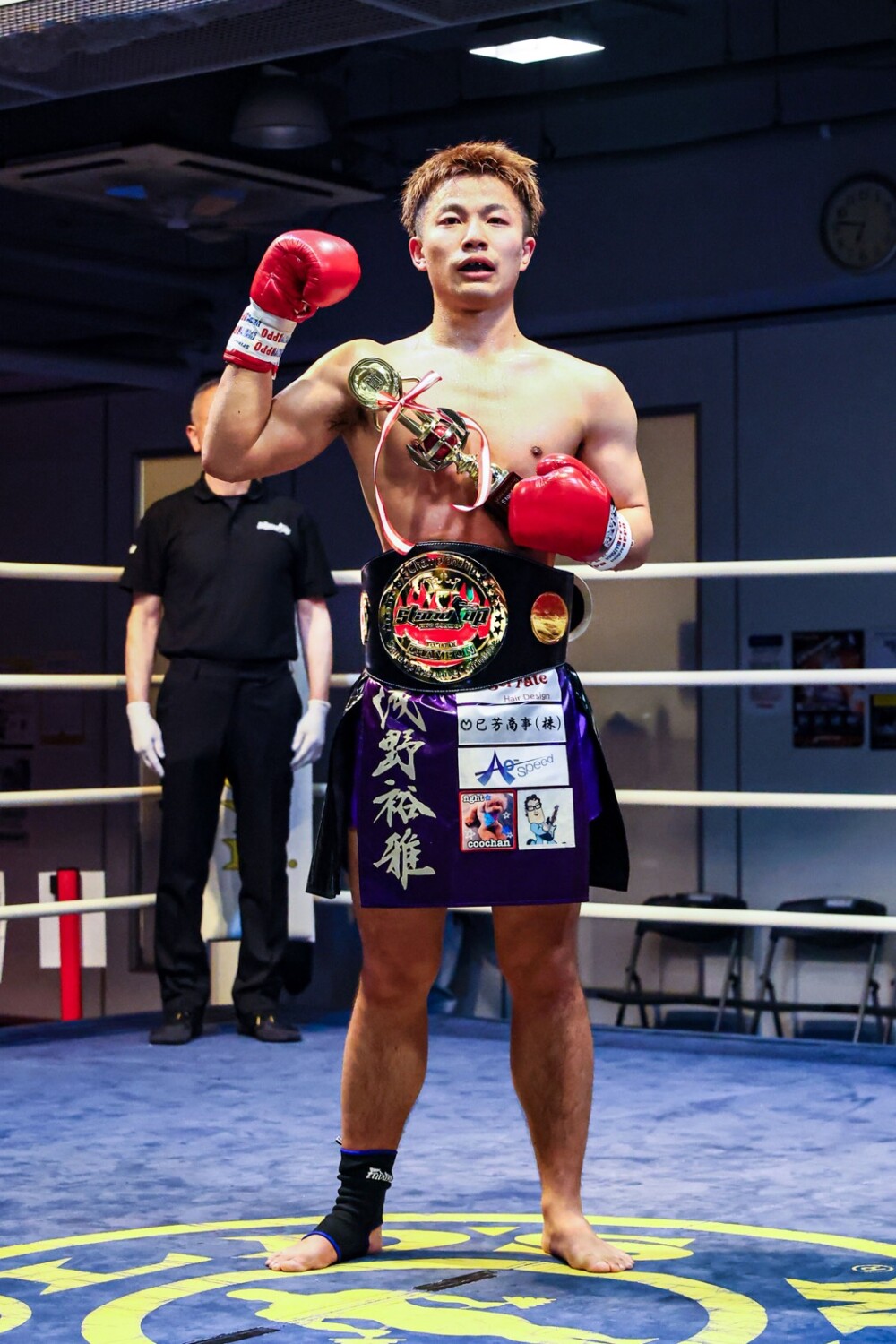 3R、YUSHINは前蹴り、左ミドルを当て距離を取り、胴回し回転蹴り。じりじり詰める浅野は接近戦で右フックを当てダウンを奪う。打ち合いの展開でも浅野がダウンを追加。後がないYUSHINは左ハイを連発させてパンチにつないで逆転KO勝ち狙いも時間切れ。計4度のダウンを奪った浅野が大差を付けて判定勝ちし、新人王に輝いた。