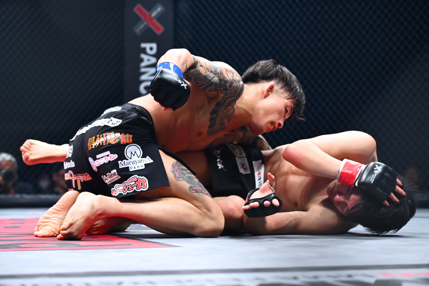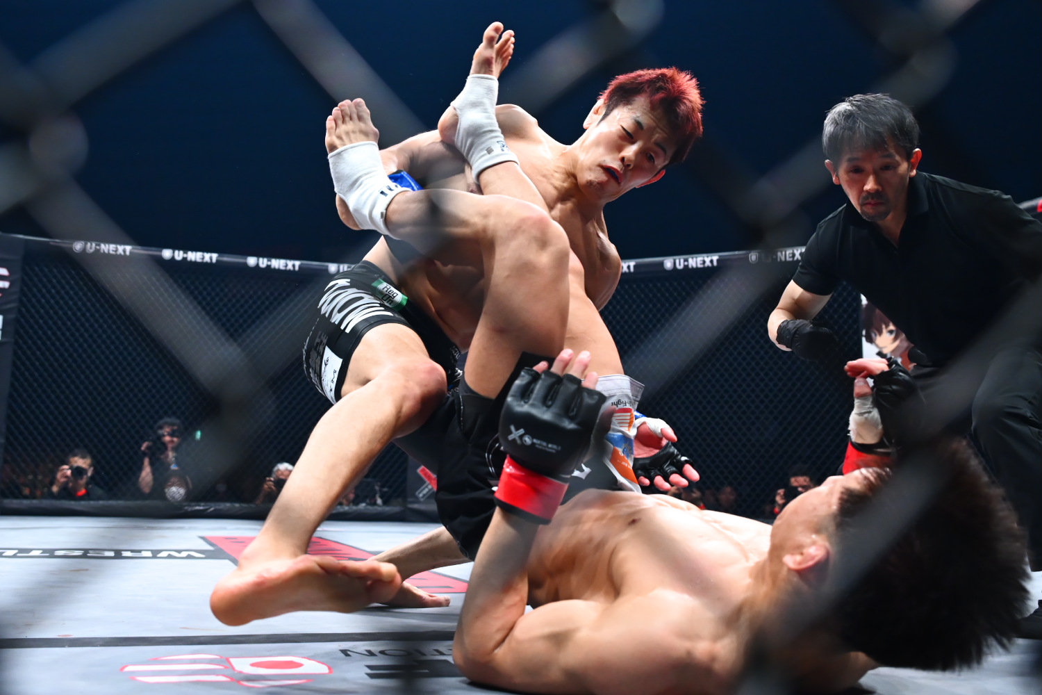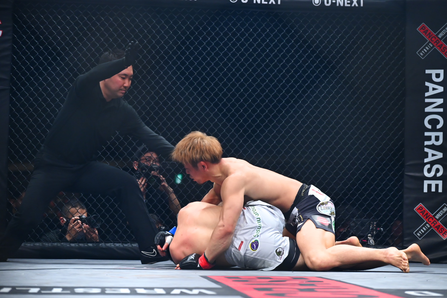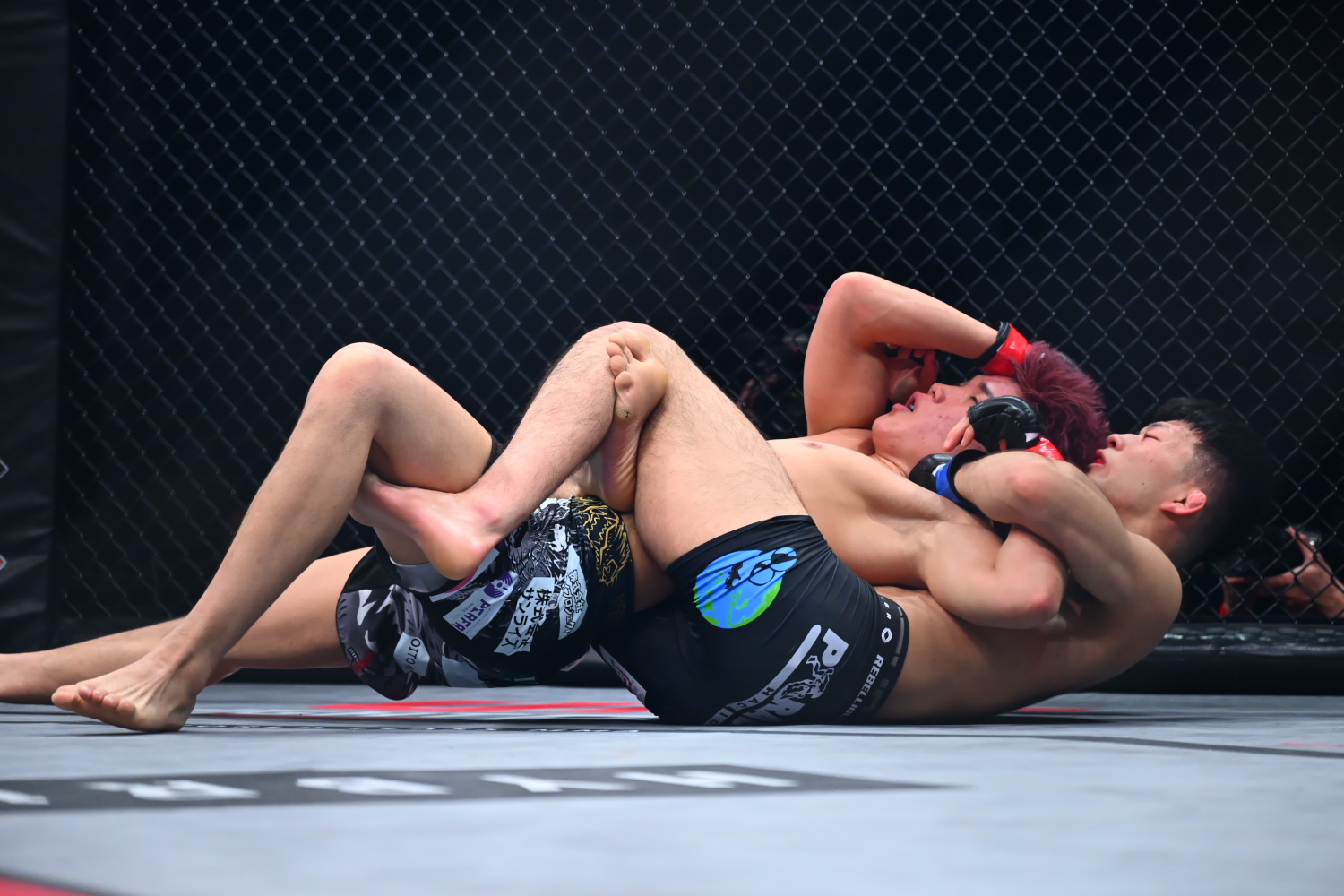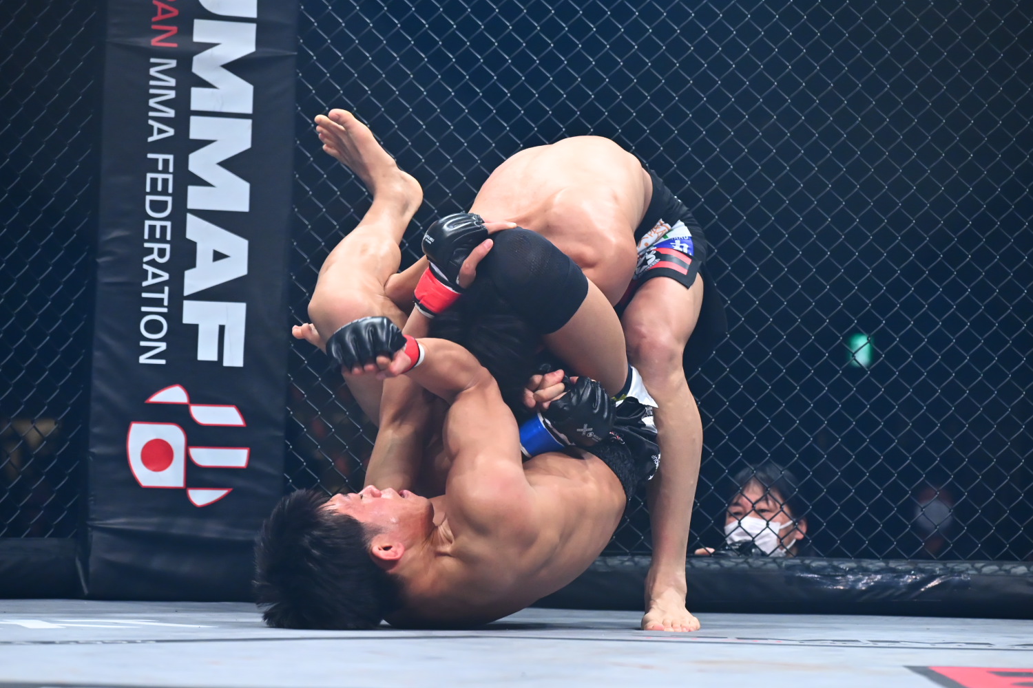 1R、眞藤が序盤、右ストレートを当てるが、岸田が片足タックルを仕掛けて倒すと、サイド、マウントと移行し、三角絞めを仕掛け、そのまま下になって締め上げ一本勝ちした。