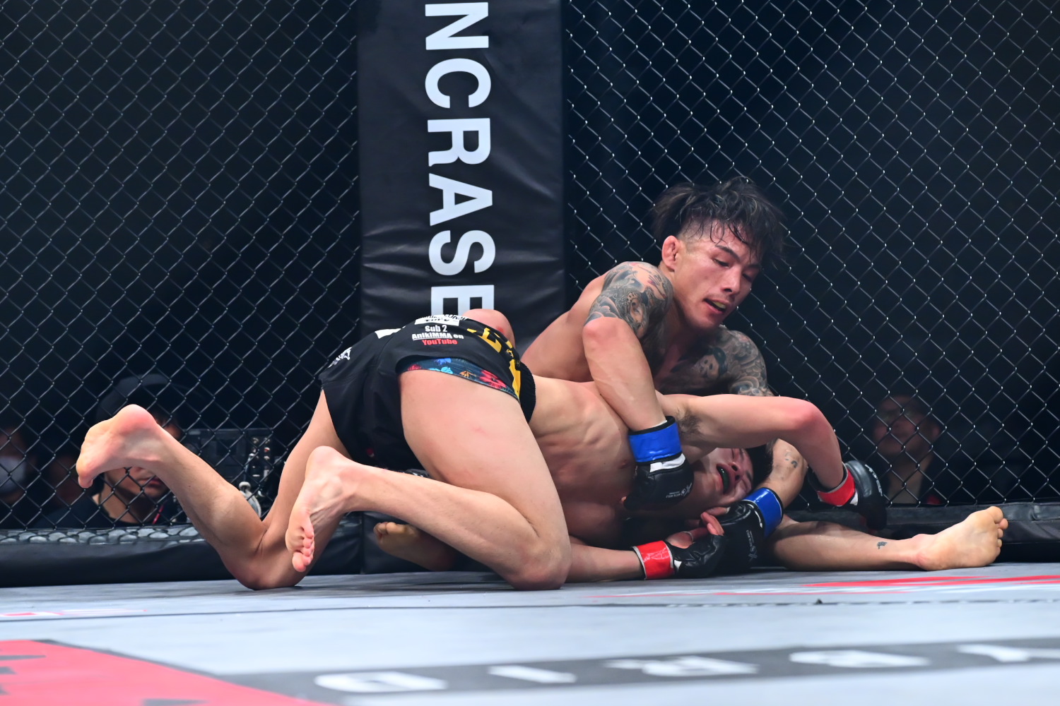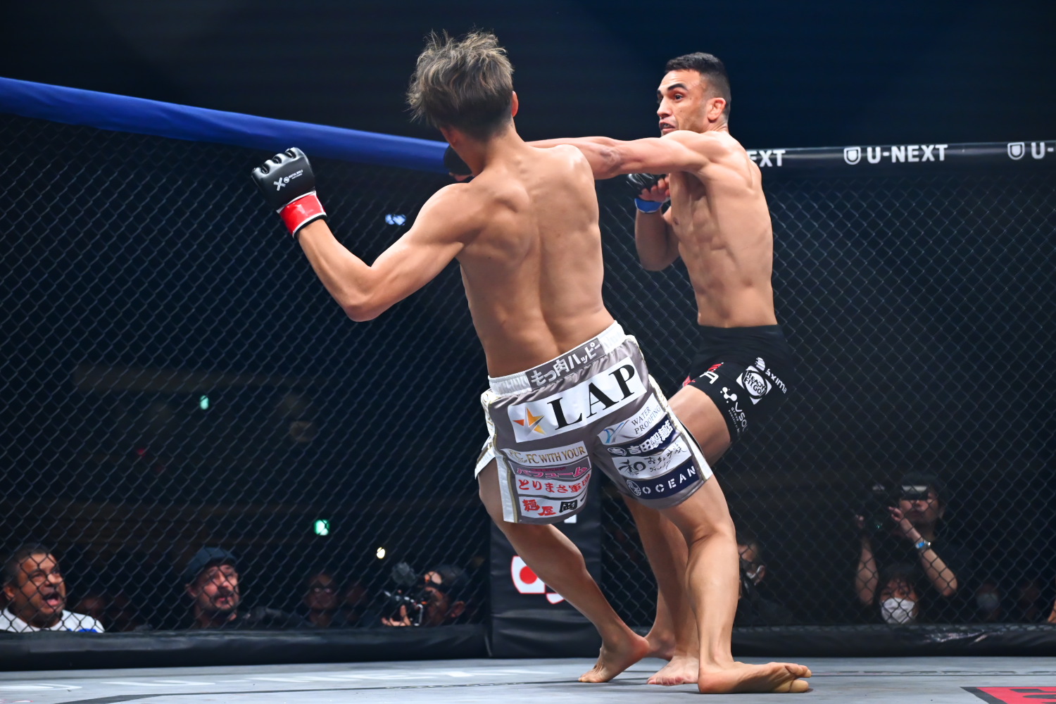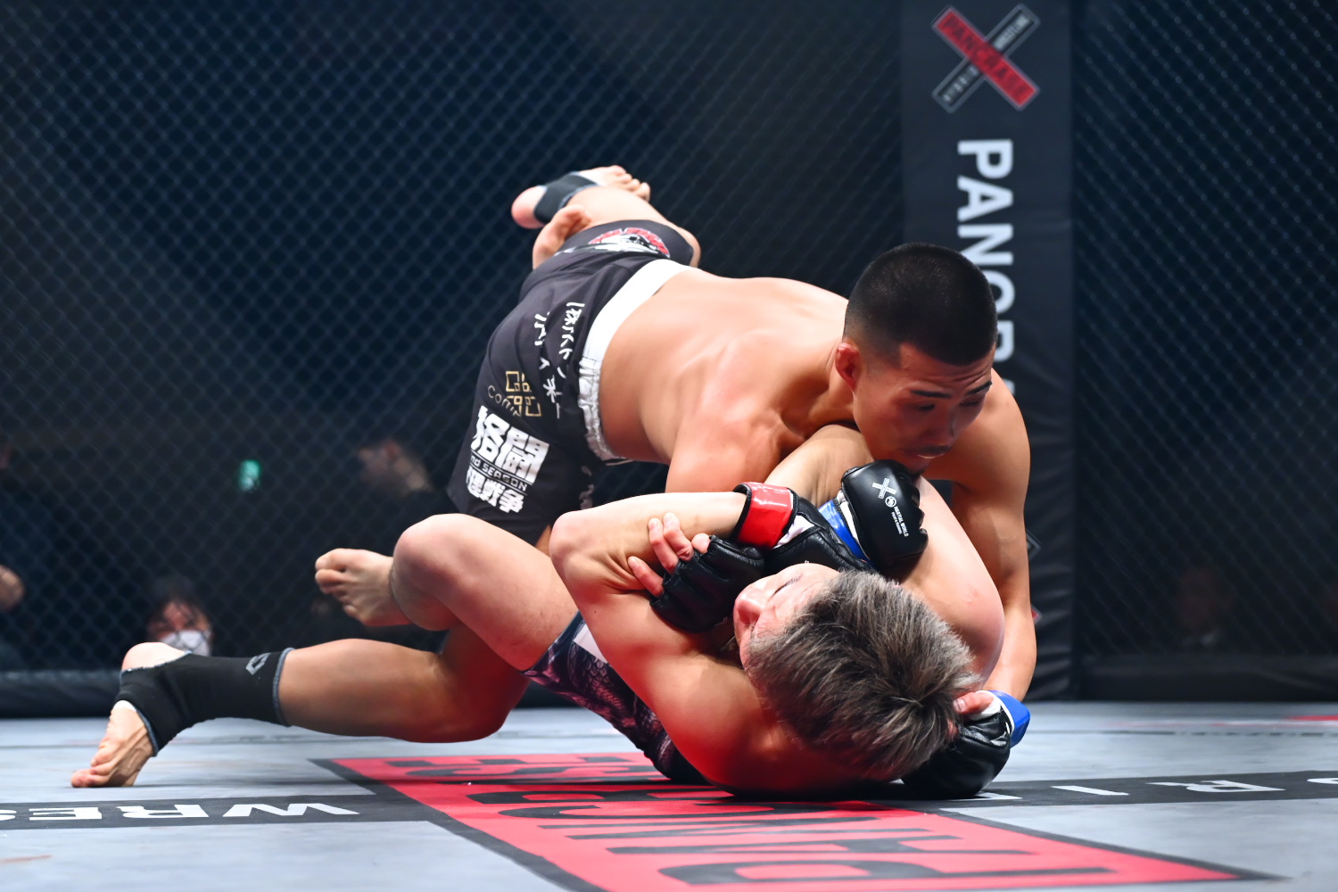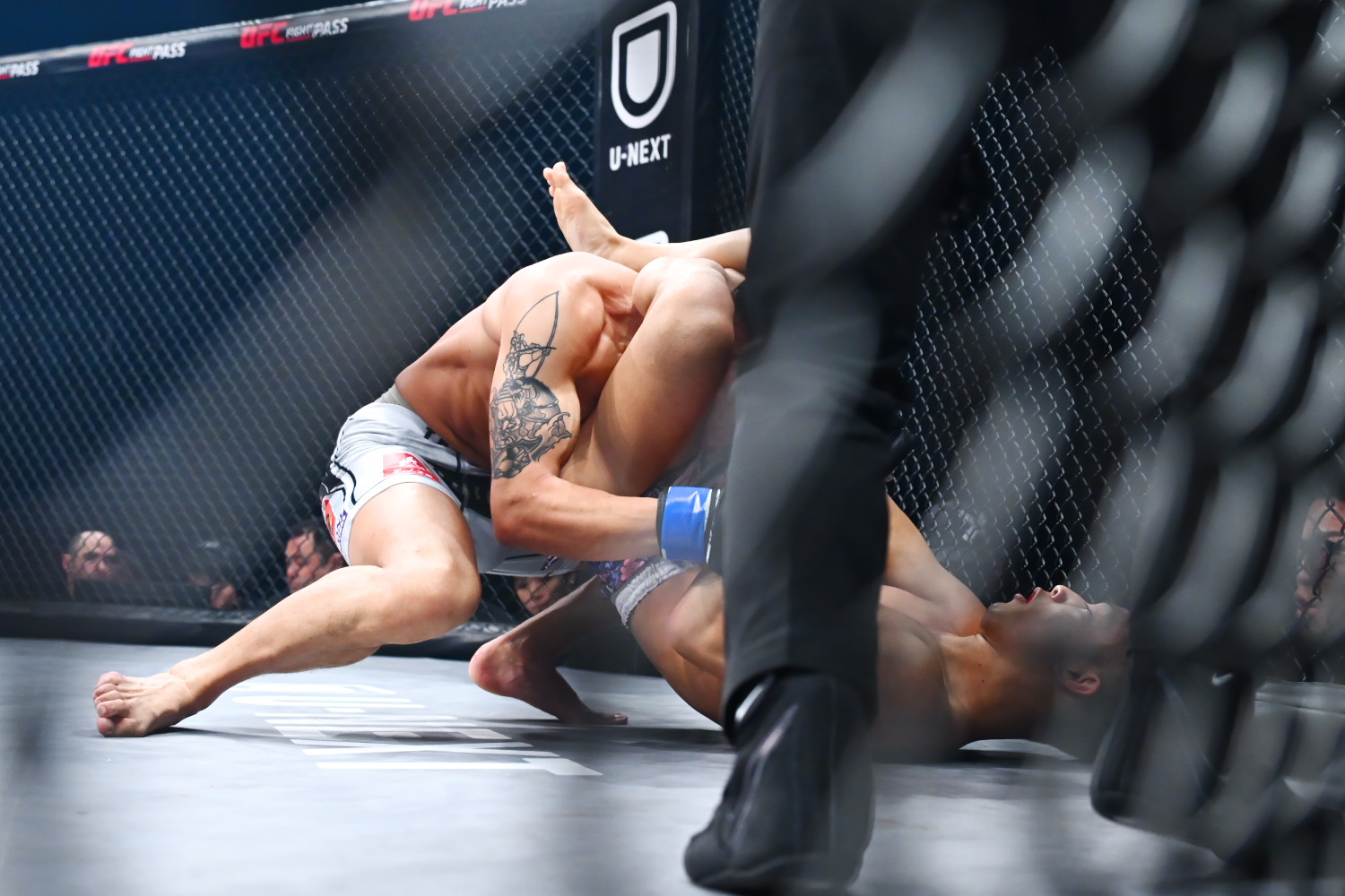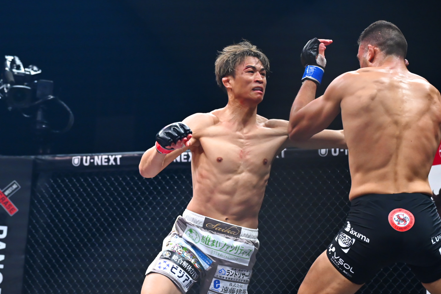 1R、眞藤が序盤、右ストレートを当てるが、岸田が片足タックルを仕掛けて倒すと、サイド、マウントと移行し、三角絞めを仕掛け、そのまま下になって締め上げ一本勝ちした。
