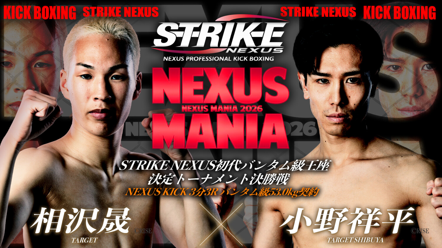 STRIKE NEXUS 3.8 GENスポーツパレス(結果):初代バンタム級王座決定トーナメントはTARGET 相沢晟とTARGET SHIBUYA 小野祥平の決勝に