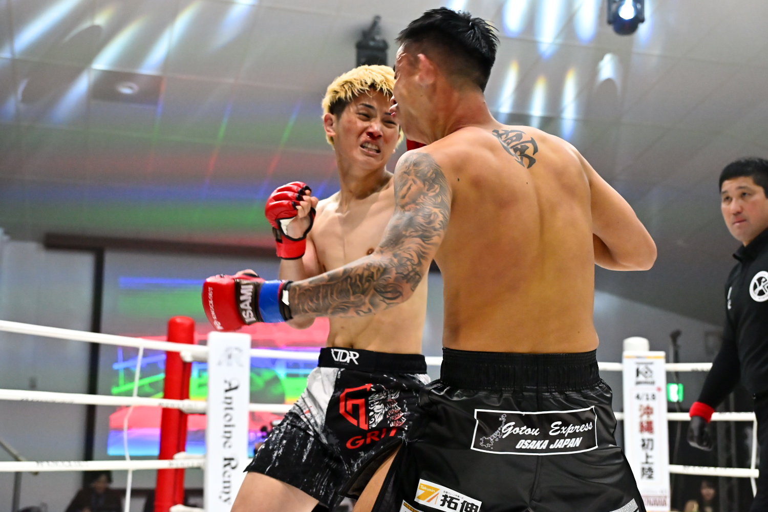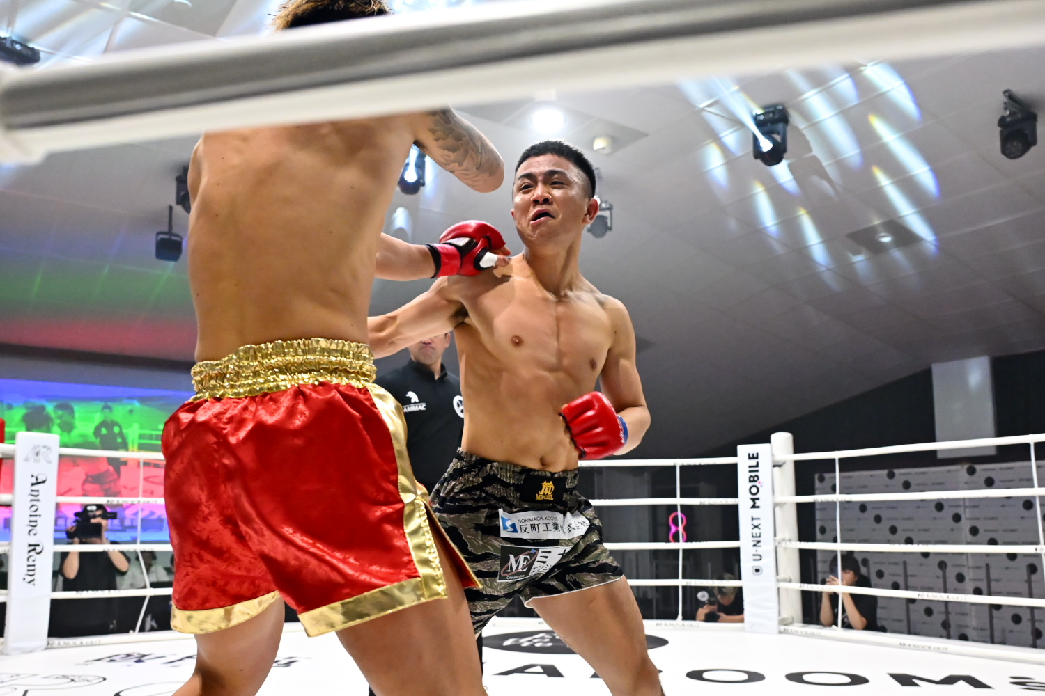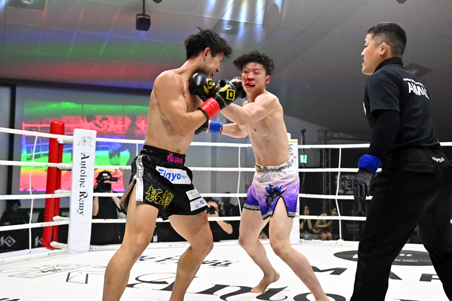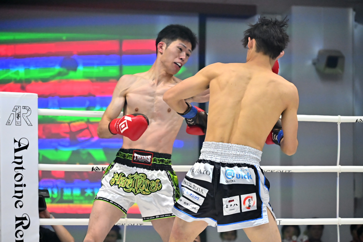 武内は大分、麻太郎は大阪出身で、両者とも2002年2月8日生まれという共通点がある。1R、初参戦の麻太郎が伸びのある左右のストレート、右のカーフキックを的確に当て、やや優位に進める。記者採点は麻太郎。