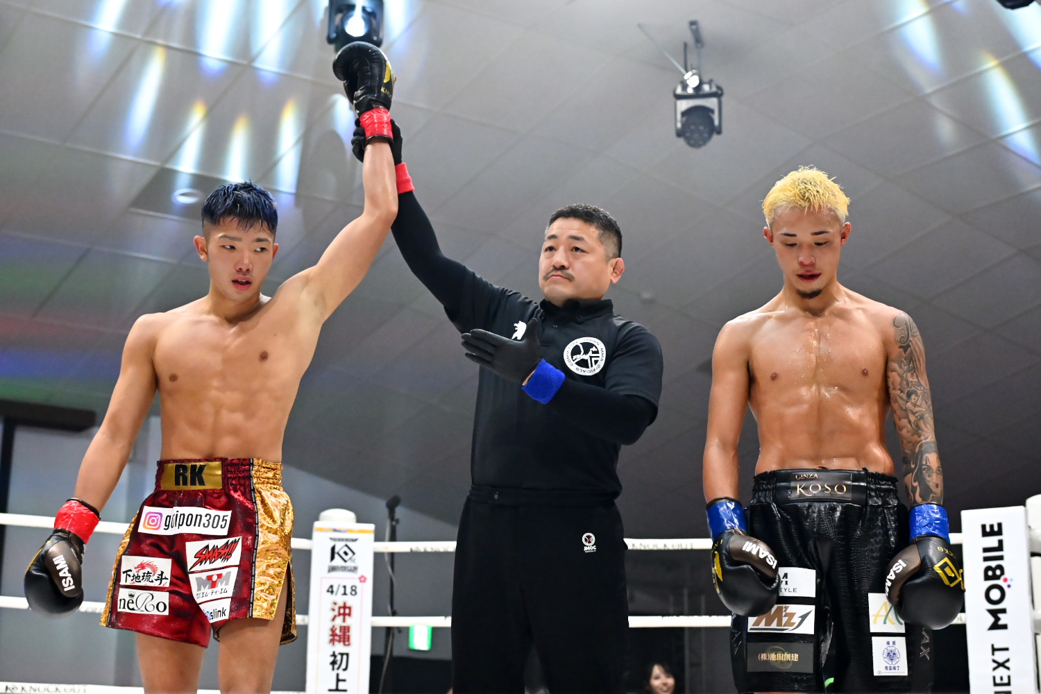 ※KNOCK OUTのBLACKルールは肘無し・ワンキャッチワンアタックのキックルール。REDルールはオープンフィンガーグローブ着用・肘有りキックルール。UNLIMITEDルールはREDルールに加え倒してからの打撃も有効なルール