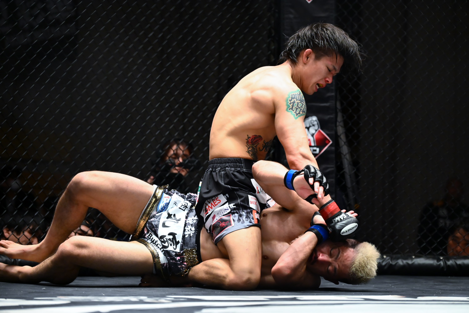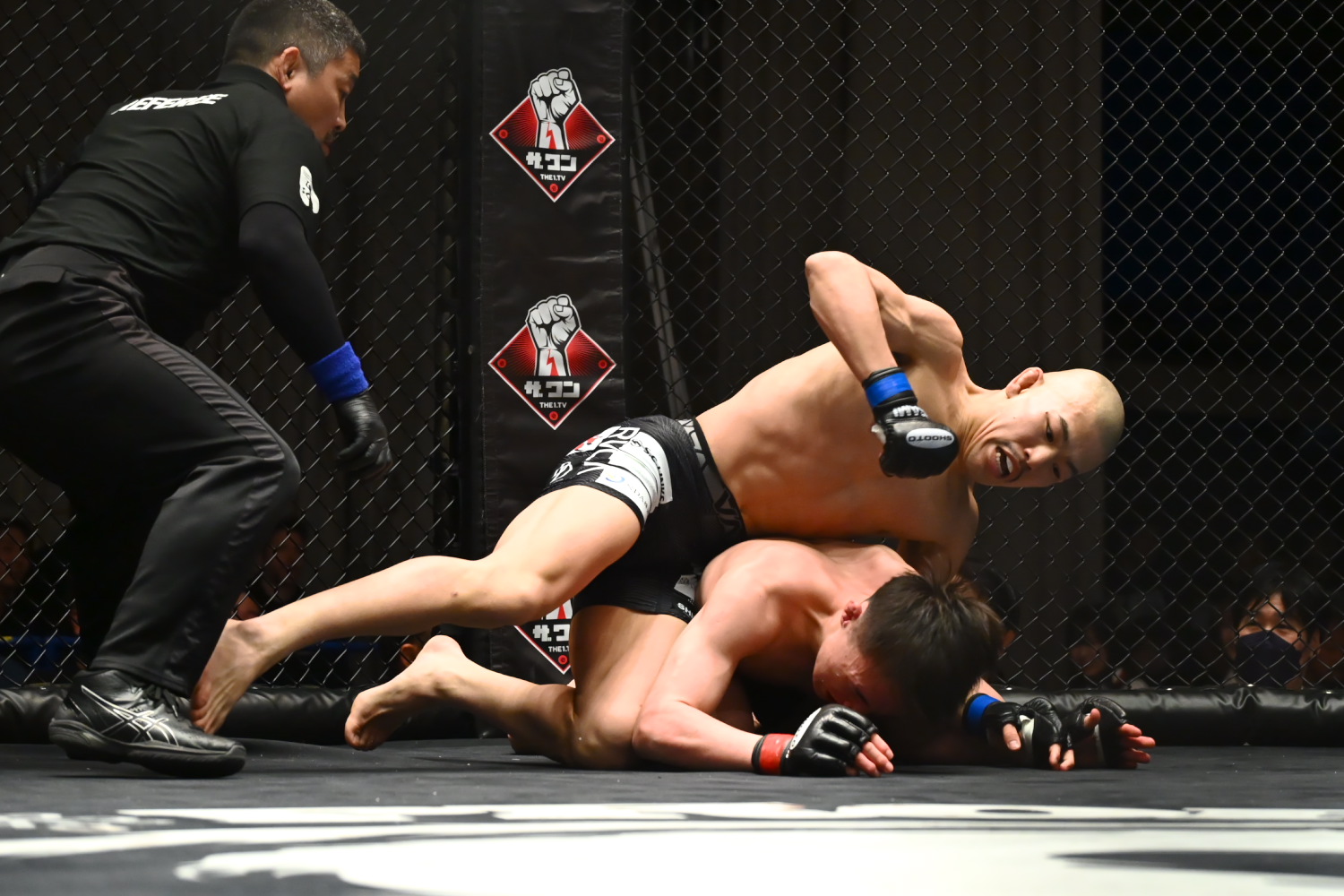 1R、青野は開始すぐタックルを仕掛け、中村は膝蹴りで迎撃しようとしたが、胸に当たり、青野が倒して上になる。青野は金網際でハーフで押さえ、バックを取りかけ、ハーフに戻る。中村は下から肘や蹴り上げを当てる場面もあるが、背中をマットにつける時間が長く、印象が悪い。最後、青野はバックから押さえ、パウンドをまとめ、好印象で終える。記者採点は青野。