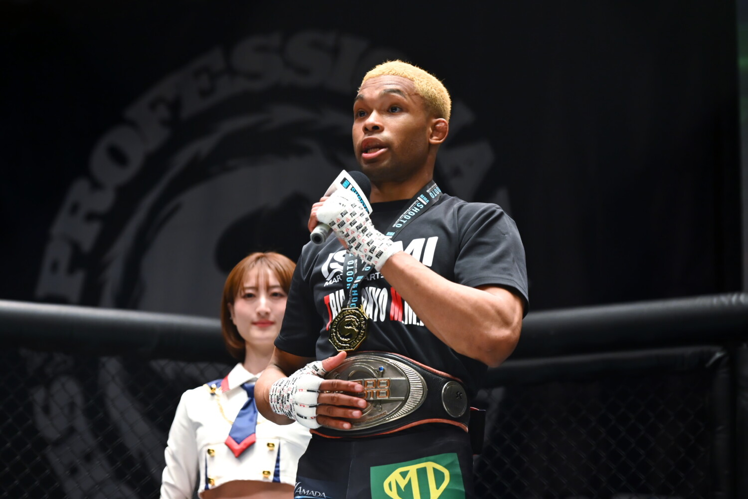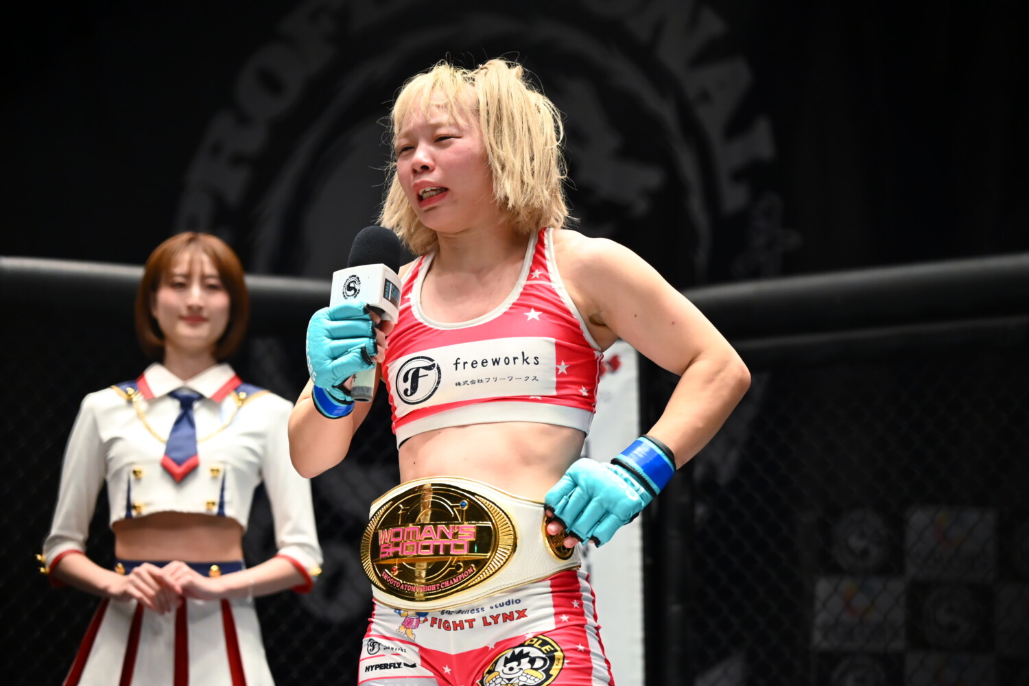 マイクを持った高岡は「香川県のFORCE GYMで練習しています。今2位で、王者の亮我選手が受けないのであれば、暫定王者決定戦を組んで欲しいですし、それも無理ならそれなりの相手とチャンスがほしいです」とアピールした。