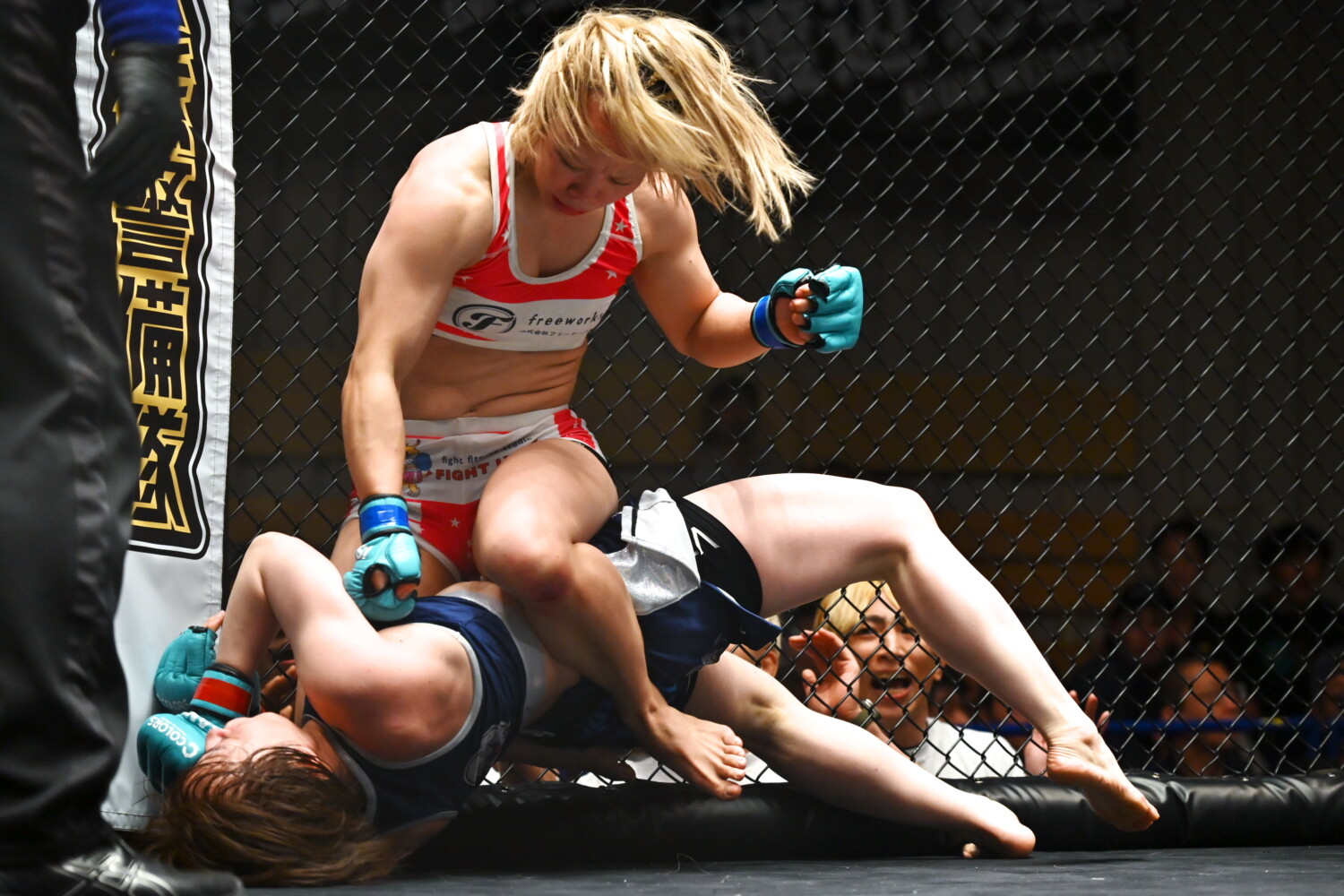 その後も中野がパウンドで追い詰め、立たれても左右のストレートを立て続けに当て追い詰める。なかなか植松レフェリーは止めなかったが、最後はダウンした杉野に、中野がパウンドをまとめたところでようやくストップした。