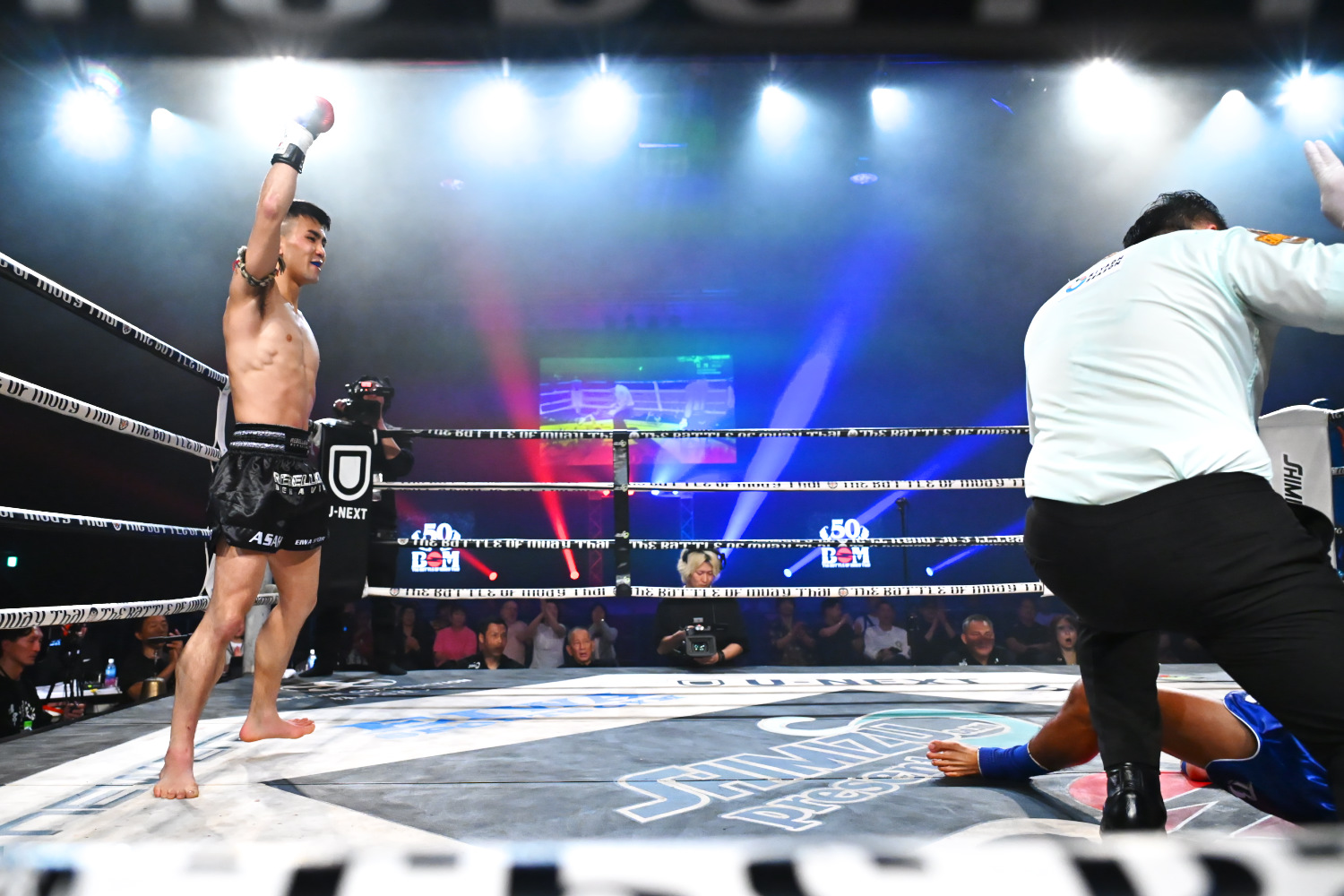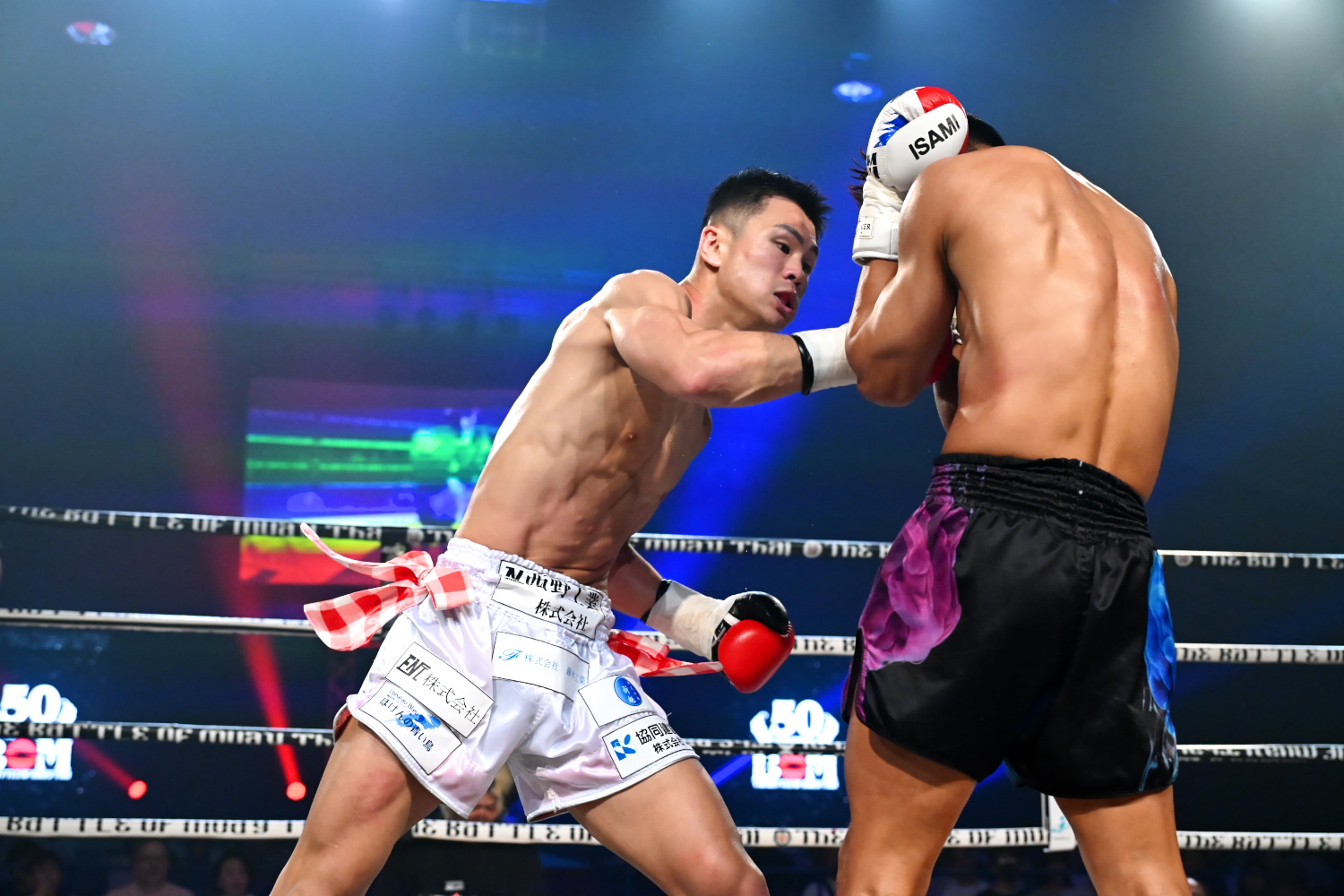 1Rからレンタが左ボディを度々強打して主導権を握り、2Rも左三日月蹴りも絡めてボディに攻撃を集中してから、右ストレートでダウンを奪う。3Rは追い詰めきれなかったが反撃を封じ判定勝ちした。
