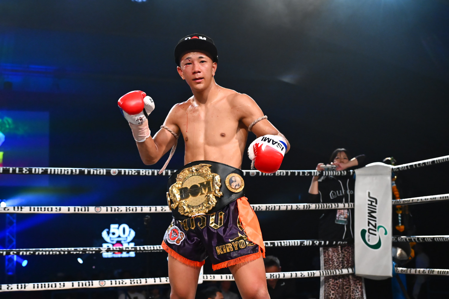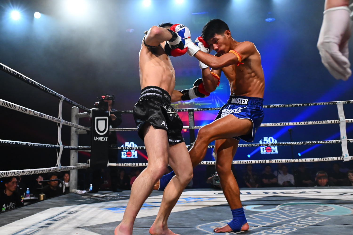 吉成名高を輩出したBOM(Battle Of Muaythai)は2013年4月14日に旗揚げし、今回、50回目を迎えた。メインに登場した朝陽は大会前のインタビューで「僕はBOMの第1回大会の時、中学生でオープニングファイトの第1試合目のアマチュアの試合に出てるんです。だから、ちょっと偉そうなことを言うと、BOMの歴史は僕から始まってるんです」と冗談めかしつつ語り「BOMとはすごく縁を感じるし、僕をすごく育ててくれた団体なので、そういう記念すべき大会で自分がタイトルを獲って(エイワスポーツジムとBOMプロモーションの)中川(夏生)会長に『50回も興行をやってきて良かったな』と少しでも思ってもらえるような、お客さんにも満足してもらえるような試合をして50回記念大会を締めたいと思ってます」と話していた。朝陽は昨年12月のONEフライデーファイツでデーングリアングライに判定負けして以来の試合で、今回の試合を弾みにONE再出撃を目論む。