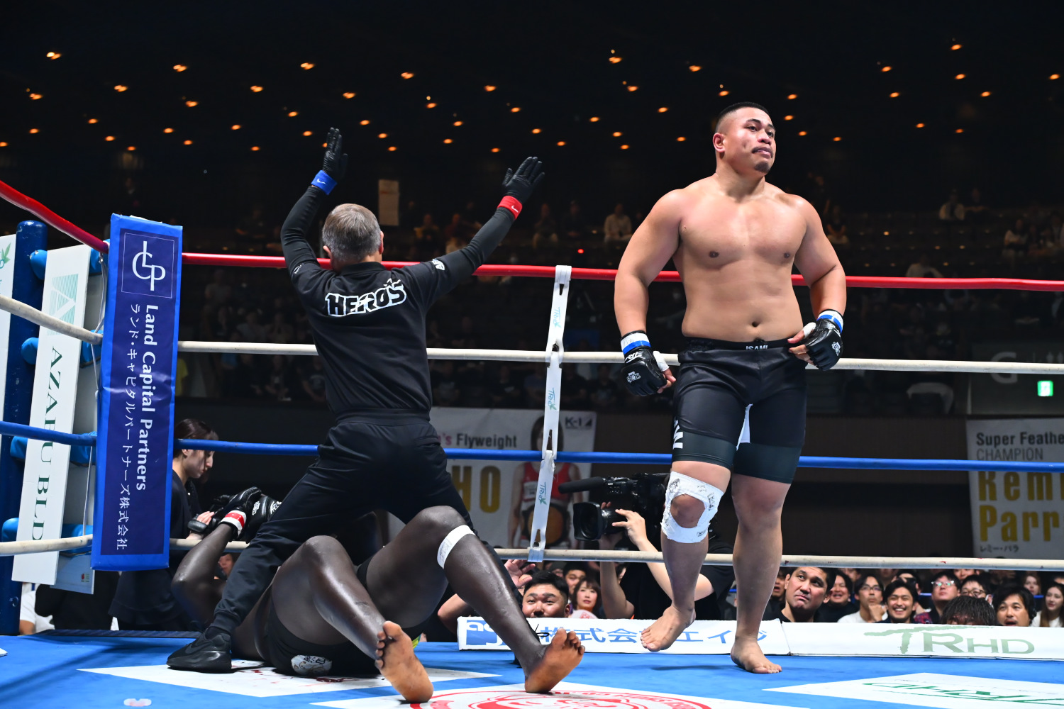 HERO’Sの試合のレフェリーは、HERO’Sのライバル大会だったPRIDEのルールディレクターだった島田裕二氏が務める。