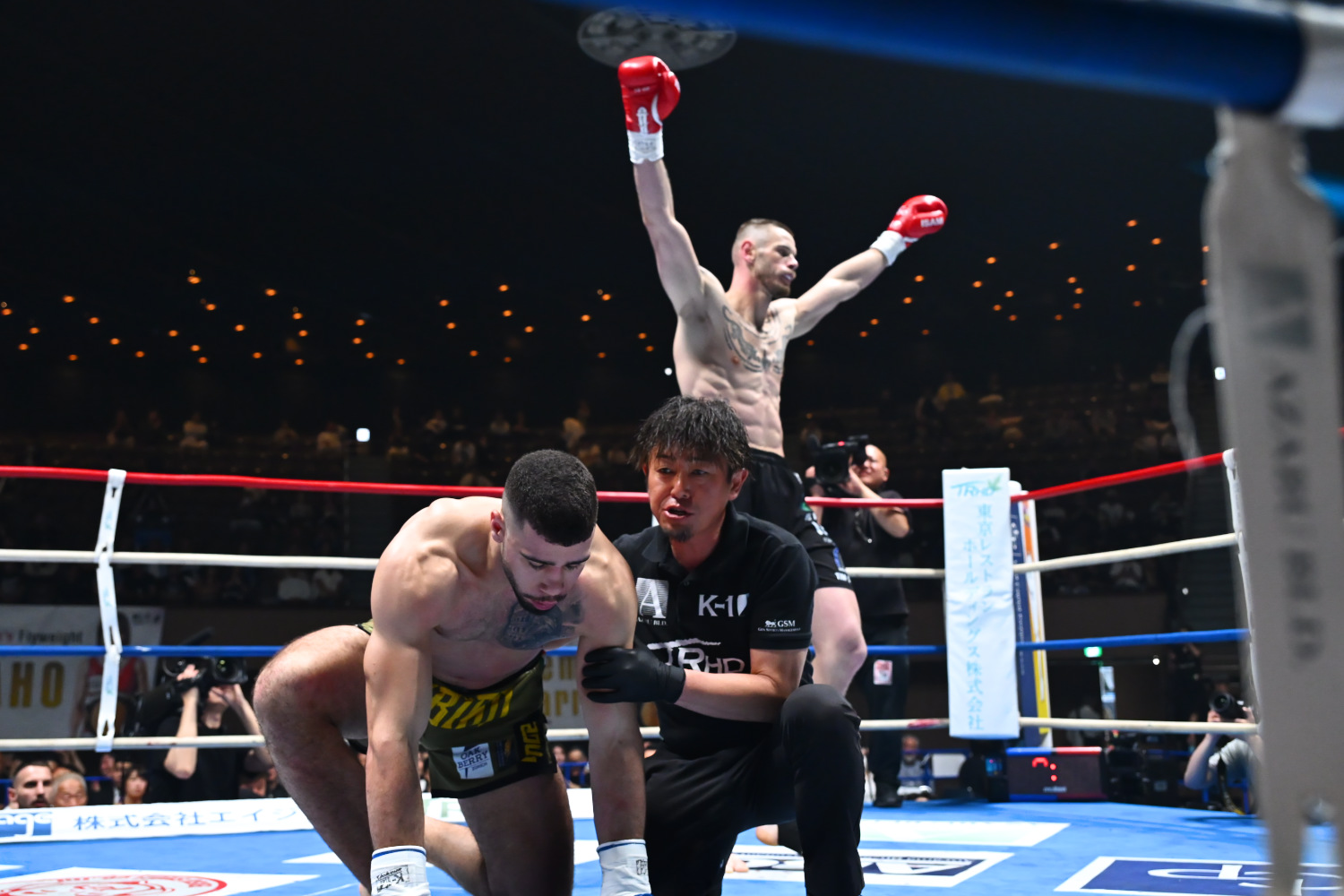 1R、長身のアハテルバーグに対し、ロリートが前に詰めてパンチを振るって襲い掛かる場面もあったが、アハテルバーグは落ち着いて距離を取る。すると終盤、ロリートがパンチを振って詰めて来たところで、アハテルバーグが右アッパーを空振りさせてからの左フックをクリーンヒット。ロリートはうつぶせでダウンし動けず、箱崎レフェリーがストップした。