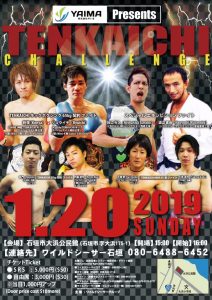TENKAICHI 1.20 沖縄 石垣市大浜公民館:廣虎の故郷で初開催。リュウイチがTKO勝ち。砂辺光久×渡辺直由エキシも