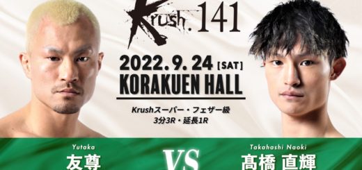 佐野は中国でユン・チーに勝利し、Bigbangではフェザー級王座を防衛し、約1年ぶりにKrushに帰還する。TETSUは6戦5勝1敗の18歳。