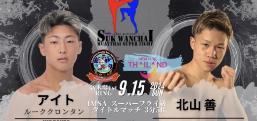 1Rは右ストレートと左フックで攻める塚越に対して、右ローと右ミドルで応戦する鈴木。中盤から互いに手数がなくなり様子見状態に。2Rは開始と同時にワンツー、右ローを打つ鈴木。更に鈴木は前に出て距離を詰めながら右ローと右ミドルを打ち、首相撲からヒザ。塚越は左右にフットワークを使って距離を取るが、鈴木の右ローと右ミドルの前に反撃が出せない。3Rになると、これまで押され気味だった塚越がワンツーと右ロー打ちながら手数を増やし、鈴木は首相撲からヒザで応戦。4Rも積極的に前に出てワンツーと右ローを打つ塚越。中盤から鈴木が首相撲で塚越を崩す場面が目立つ。5Rになると、鈴木が首相撲からヒザでダウンを奪い、判定で鈴木が勝利し王座に就いた。