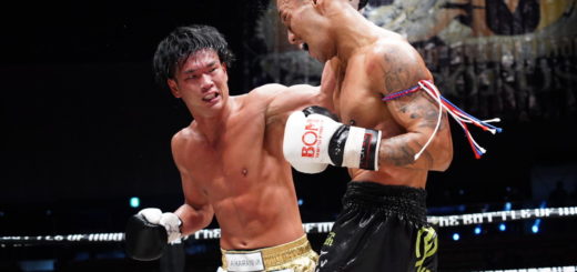 2R、圧力をかけて前に出るロペスだが、ミドル、三日月で動きが止まると松島はストレートからの左ボディー。ロペスも怯まず前に出て豪快なパンチを打つが、松島はパンチ、ミドル、ハイと打って試合を優位に進める。