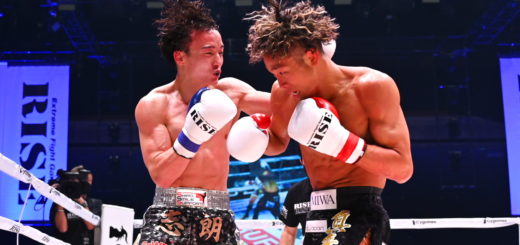 瑛作に流れが傾いたが、3R、序盤の打ち合いの展開で、瑛作の左ストレートのタイミングで、友希の左肘が炸裂。瑛作は額を深く切り、大量に出血する。最初のドクターチェックでストップがかかり、友希が逆転勝ちを果たした。