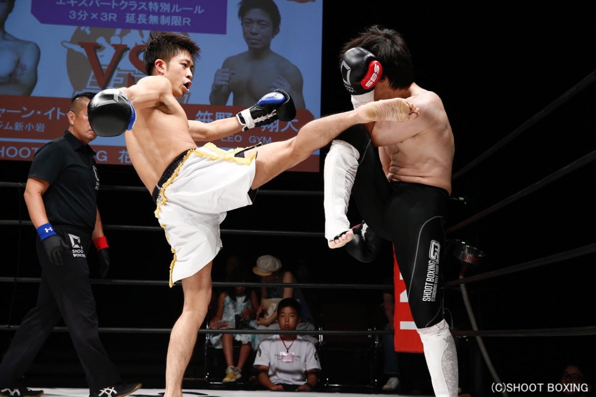 イトーは前日計量で1.5kgオーバーしたため、レットカード2枚(減点2)、10オンスグローブ使用のグローブハンデ(笹野は本来の8オンスグローブ使用)が課せられてのスタート。1R、右ローの笹野がパンチにつなぐと、イトーは一本背負い狙い。終盤、笹野はラッシュを仕掛けて仕留めにかかる。2R、パンチで詰める笹野は右フックでダウン奪取。立ち上がるイトーにパンチ連打からのヒザを見舞う笹野が2度目のダウンを奪い、レフェリーがストップした。