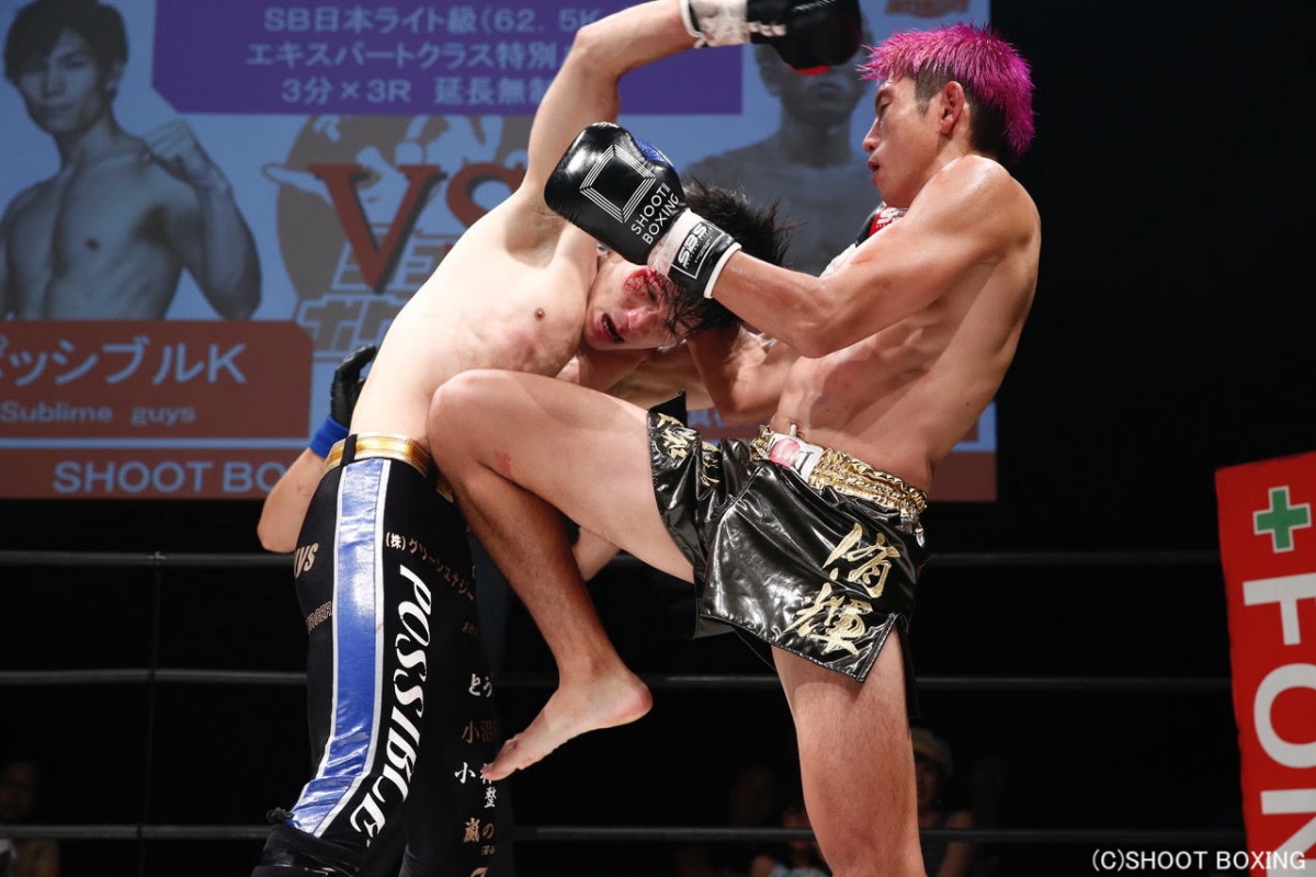 1R、サウスポーの増井は右ジャブを突きながら前進し左ミドル。ポッシブルはひたすら下がりながらパンチを細かく返して譲らない展開。2Rも増井が前に出て追う展開ながらも、ポッシブルはパンチ、ローを返していく。3R、激しく打ち合う中、ポッシブルは胴回し回転蹴り。増井の左ハイキックでポッシブルは額をカットし流血。お互いにパンチを交錯させたが、決め手に欠けて本戦はドロー。延長R、増井が左ストレートでぐらつかせ、左ハイでKO勝ちした。