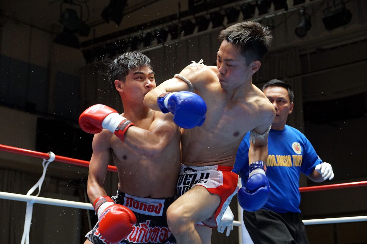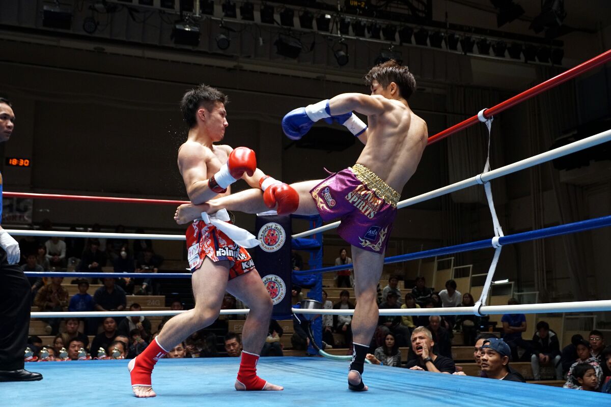 RISEで活躍する直樹はムエタイルール初挑戦。白木は5戦4勝1敗の選手。1R、直樹が圧力をかけ、左ジャブを度々当て、首相撲では左肘を出す場面も。2Rも直樹が左ジャブ、右アッパー、右ローなどを当て、崩しも決め、やや優位だ。
