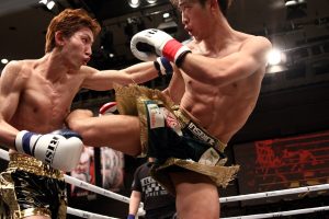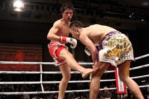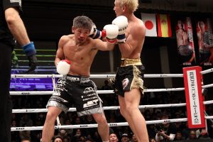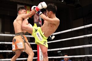 1R、結城が左ボディ、左右のロー、右ハイを駆使しつつ、右ストレートで佐藤をぐらつかせる。佐藤もパンチの打ち合いで返すが、結城の主導権は変わらない。