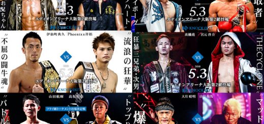 令和時代に突入した昨年5月からREBELSの山口元気プロデューサーがKNOCK OUTも指揮するようになり、8月に大田区総合体育館で山口体制で初のビッグイベントが開催された。今回の2度目の大田大会ではKNOCK OUTでは初となる1DAYトーナメントが行われた。出場メンバーには鈴木、西岡、古村、与座と、20歳の選手が4人もおり、新生KNOCK OUT生まれの新スターを生み出そうという狙いが見える。さらにトーナメント名には、REBELSを以前から応援している漫画家の森恒二さんの作品「無法島」が冠せられ、サバイバルマッチというテイストが強調されている。