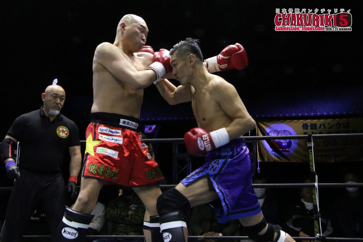 懐かしの K-1 JAPAN がチャクリキのリングで蘇える。白血病からの復帰を果たし、骨髄バンクチャリティに邁進するノブ ハヤシ選手の姿を意気に感じ、「JAPANのプリンス」中迫剛選手が12年ぶりのリングへ! あの伝説の K-1 JAPAN が蘇える一戦。改めて、その別格のような中迫選手、ノブ選手の大きな身体を見ると、こんな大きな男たちが更に大きな外人勢とぶつかっていた K-1 JAPAN シリーズが説明要らずの面白さだった事を実感させられた。試合後には大会収益の一部が公益財団法人日本骨髄バンク様に寄付され、チャクリキには財団より表彰状をが贈られた。