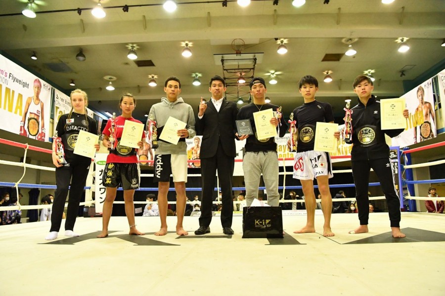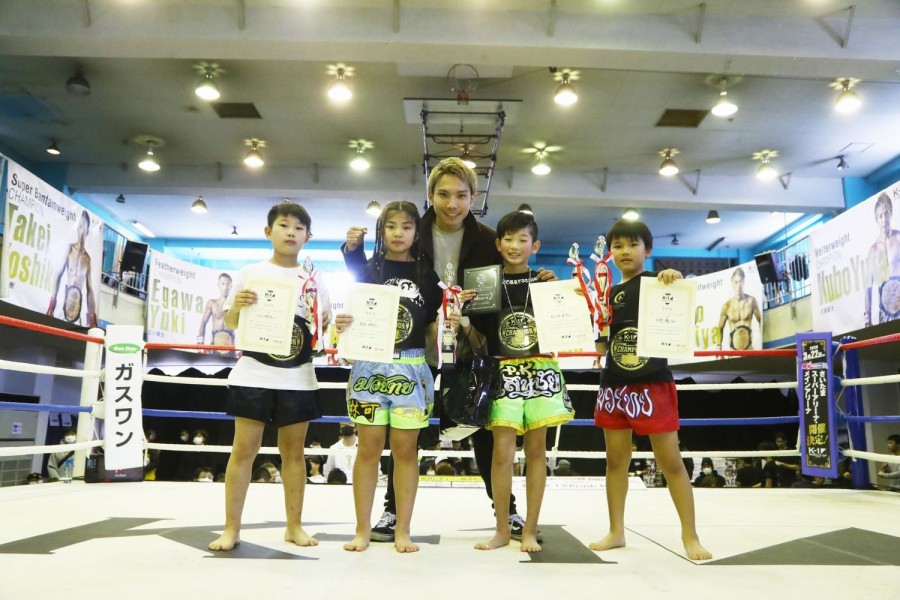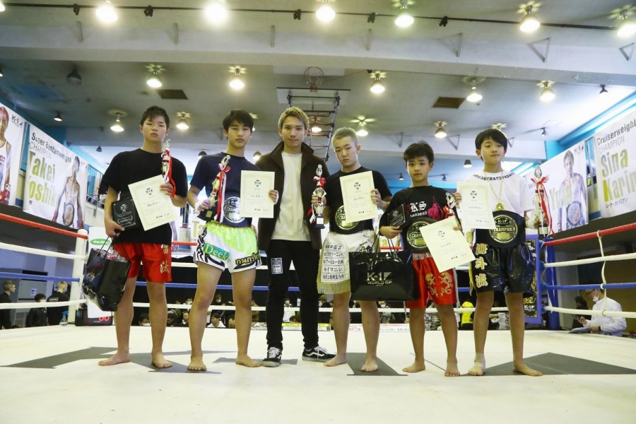 トーナメント表彰式のキッズ・ジュニアの部にはKrushスーパー・ライト級王者の佐々木大蔵が登場。「僕もDy club.というキックボクシング教室と大志会空手の代表を務めています。選手みなさんの動きはもちろん、ジム・セコンドのみなさんの指示など刺激になることがたくさんありました」とキッズ・ジュニアの試合について語った。