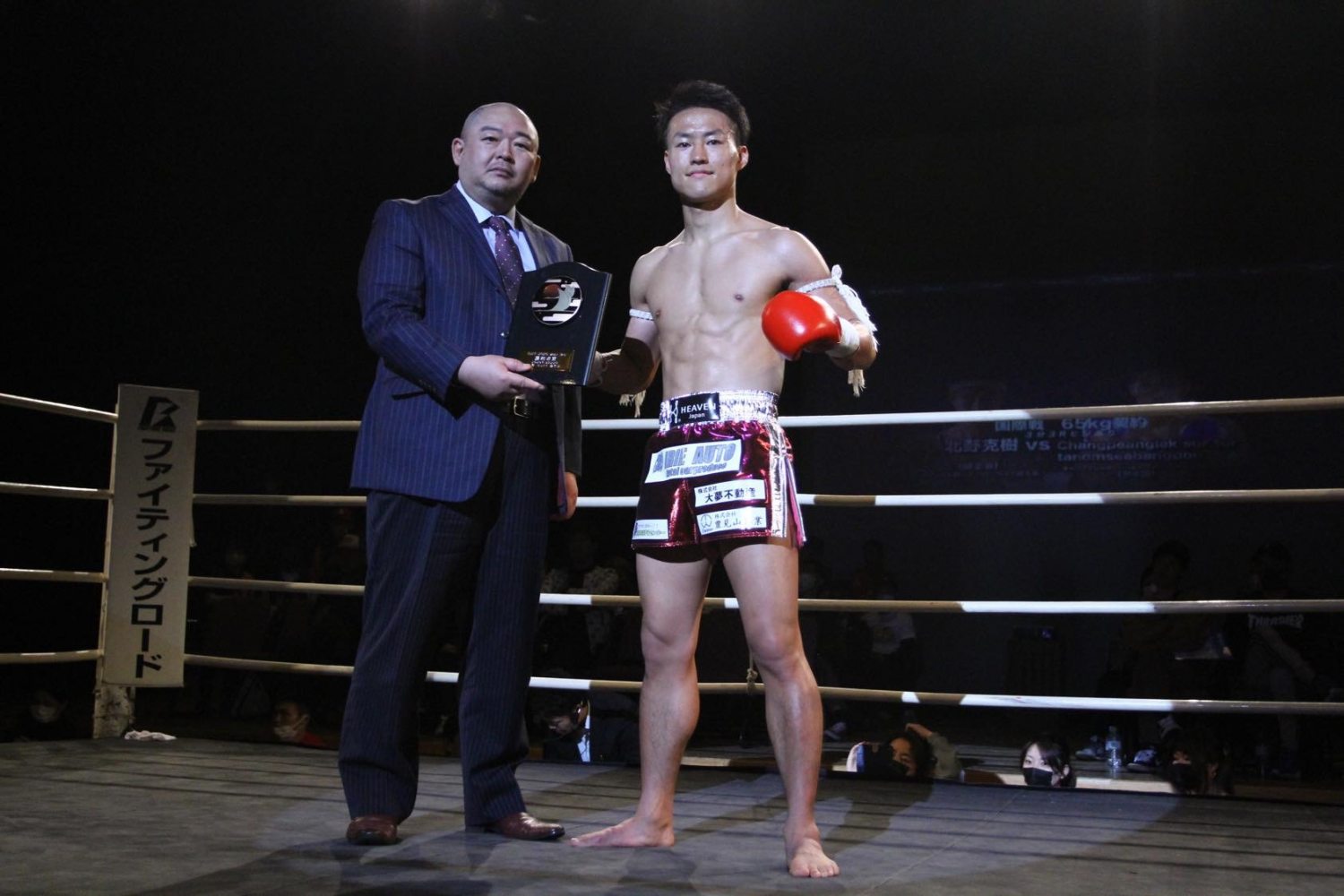 試合後、マイクを握った北野。「今日はお忙しいなか応援に来ていただきありがとうございます。コロナウイルスの影響で対戦相手が変わってタイの選手に受けていただけたことで試合をできて感謝しています。これからもっと強い選手とやって世界に向けて頑張っていこうと思うので応援よろしくお願いします」とファンへ感謝と更なる飛躍を誓った。
