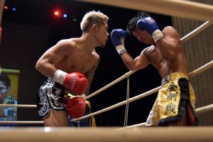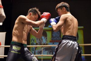 1R お互いにローキックで距離を測る。谷岡がパンチで前に出ると、佐藤はバックステップで懐に入れさせない。佐藤は距離を保ち前蹴りとミドルキックで流れを掴みに行く。パンチで前に出たい谷岡だが、佐藤の前蹴り、バックブロー、ミドルと、巧みな攻撃に攻めあぐむ。佐藤がペースを掴んだように見えたが、1R終盤に谷岡のパンチが当たりだす。谷岡は、ここぞとばかりにパンチのコンビネーションを繰り出し、重たい右フックが2度3度と佐藤の顔面をとらえた。