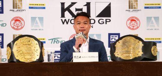 地元の京都、東京の仲間、ここまで応援に来てくれてありがとうございました。怪我も多くて苦しい道のりで、あきらめかけた時もありましたけど、皆さんの後押しでここまでやれました。魔裟斗選手に憧れて上京して、色んな格闘技がありますけど、やっぱりK-1が一番大好きで、このベルトを迎えられて本当にうれしいです。奥さんのお腹に赤ちゃんがいて、2月に生まれることになりまして、お父さんまだまだ頑張っていきますので、今後ともご支援とご指導をお願いします。さらにこのベルトの価値を上げるため頑張っていきます。