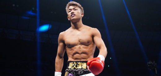 すると2R、功也が圧をかけ、右ジャブからの左ストレートで序盤からダウンを奪う。中盤にも功也が左ストレートを効かせるが、篠原はパンチを振り回すと、右フックで功也をひるませる。終盤、功也は持ち直し、圧をかけ続ける。記者採点は10-8で功也。